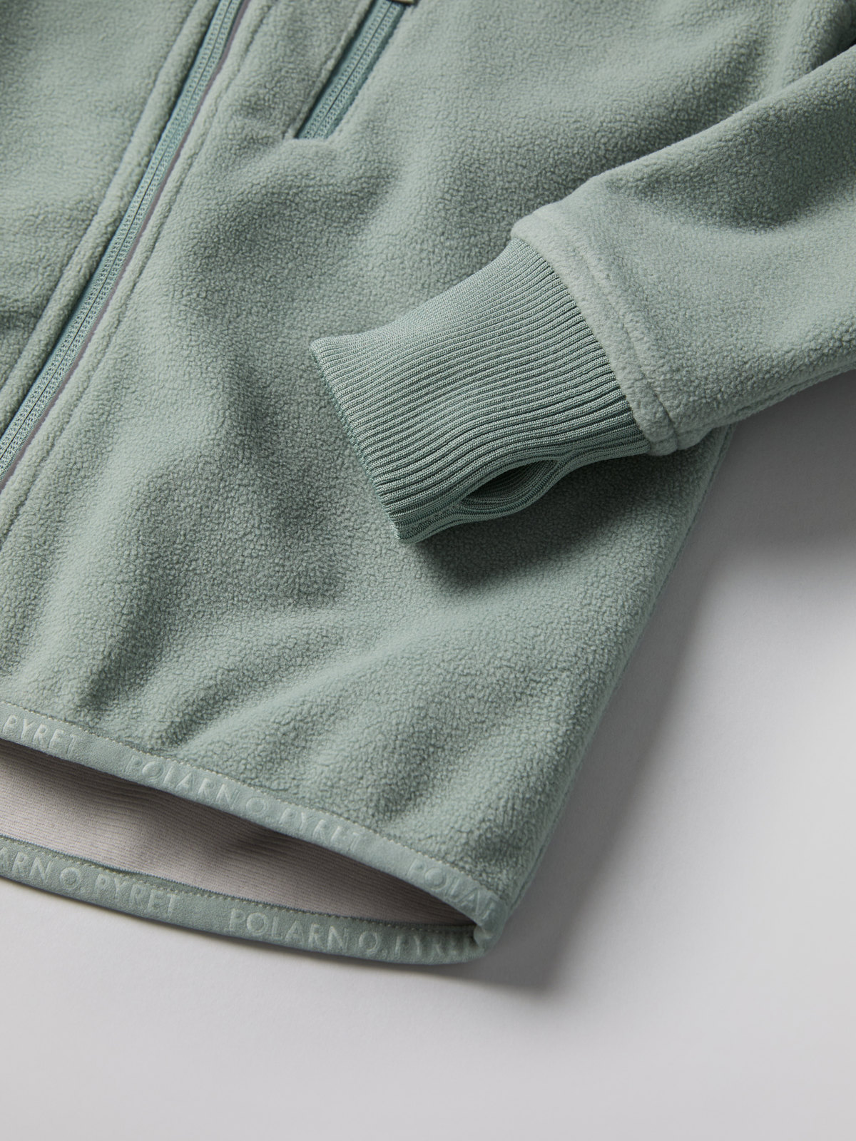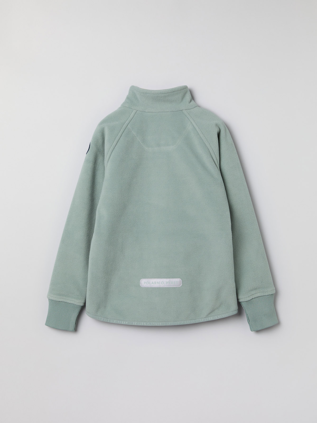 • Ribbestrikket vrangbord med tommelåpning nederst på ermene (størrelse 80–92 har ikke tommelhull)