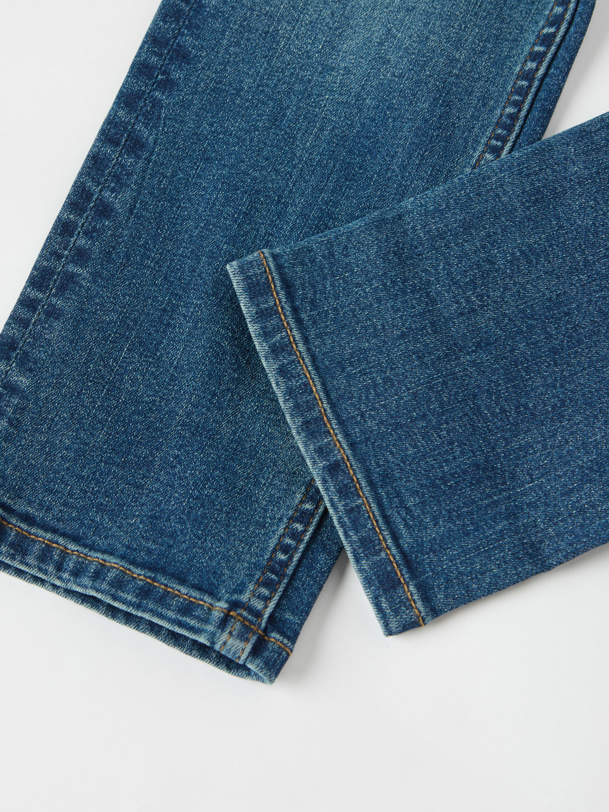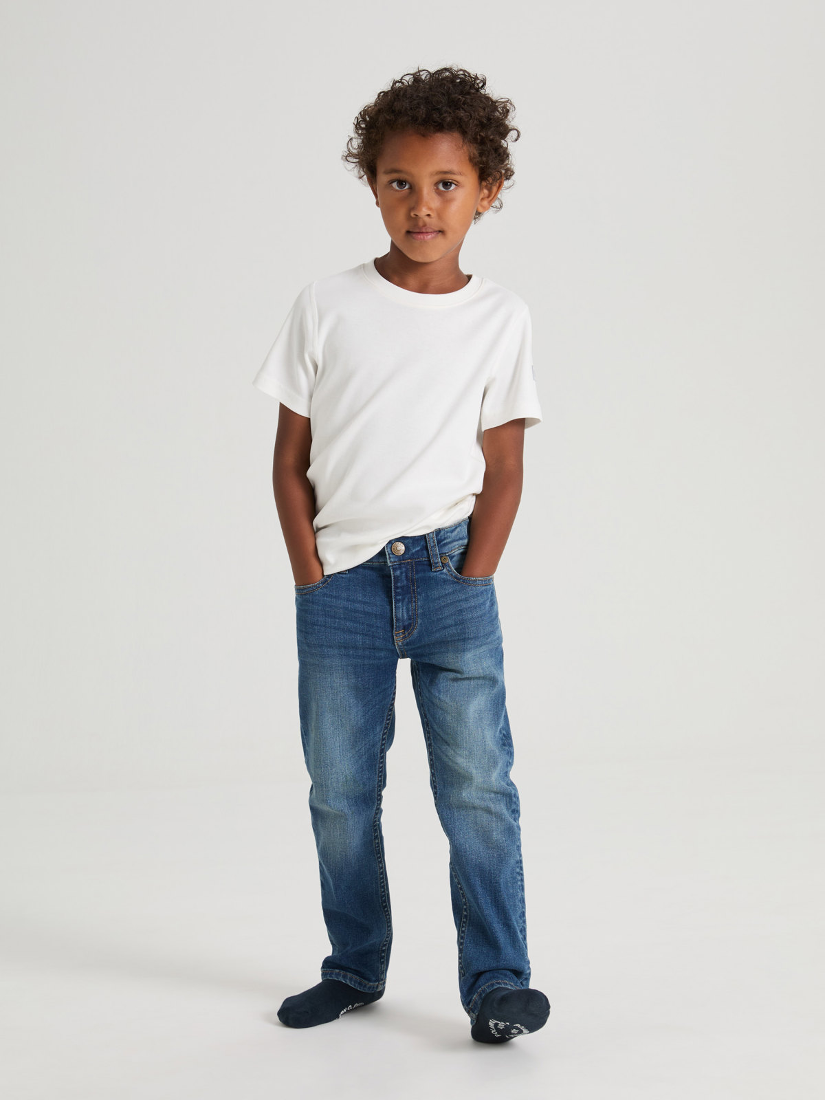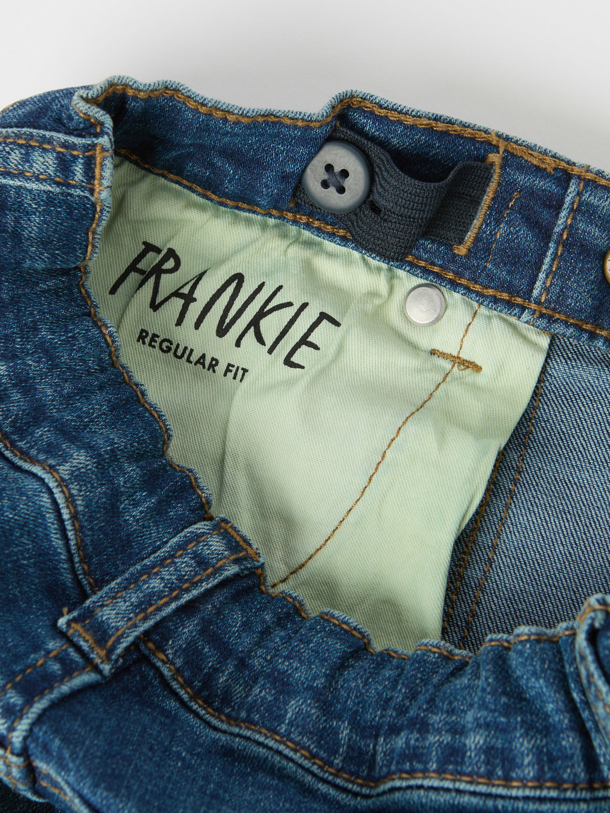 Ha det gøy i FRANKIE – lekne jeans i dra-på-modell med myk stretch. Perfekt for barn som vil ha en mer avslappet passform og slippe glidelås og knapp. Alle våre jeans er fra våren 2022 laget av GOTS-sertifisert bomull!