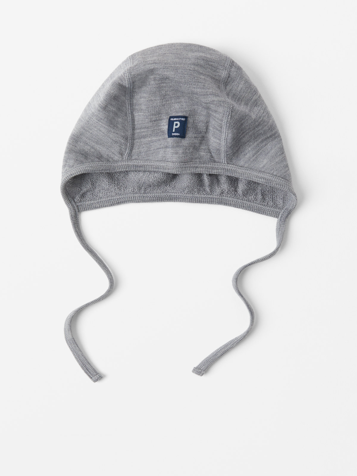 Hjelmlue til baby i varm ullfrotté av merinoull. Luen har ekstra myke sømmer som ikke gnager. Ullfrottéen absorberer fuktighet effektivt og holder barnet varmt og tørt. Den gjør også at hjelmen føles litt kraftigere, og løkkene i frottéen gjør at luften sirkulerer.