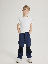 • Midjen har hemper til belte og kan reguleres på innsiden med knapphullsstrikk.