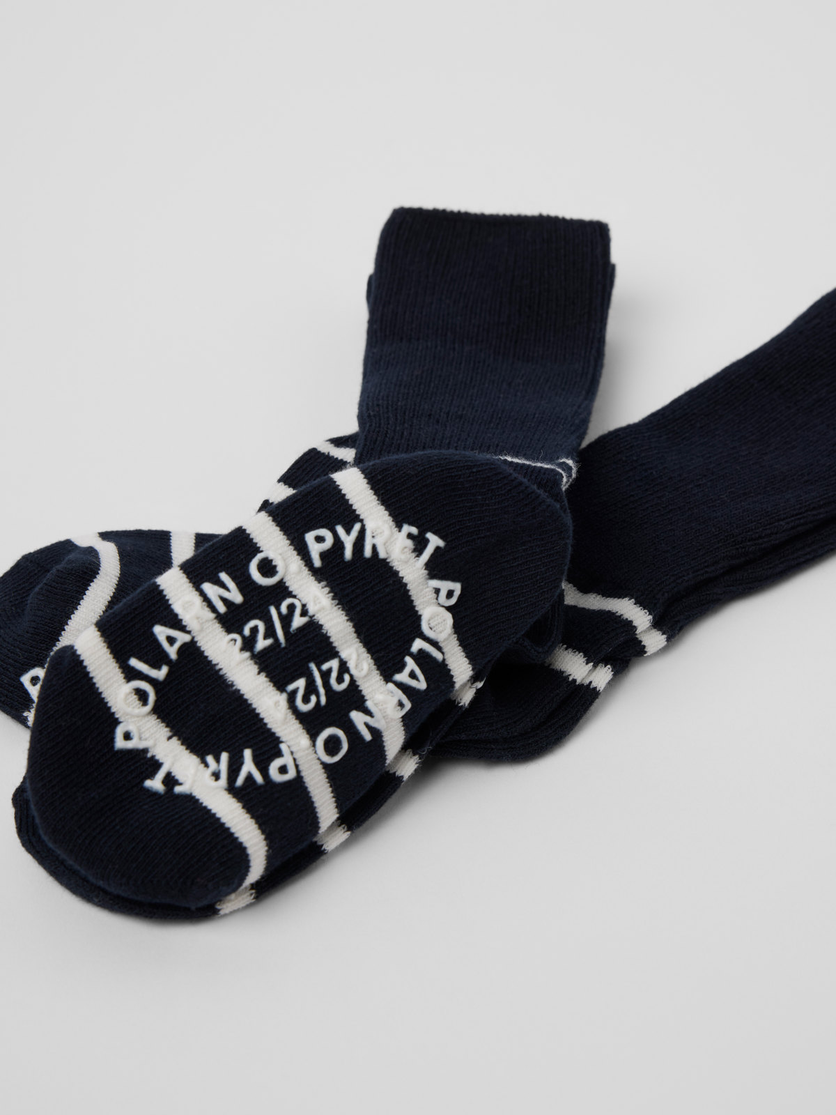 Fyll på sokkeskuffen med en 3-pakning sokker med sklisikring. Sokkene er fremstilt i myk økologisk bomull og har en vrangbord som kan brettes opp eller ned.