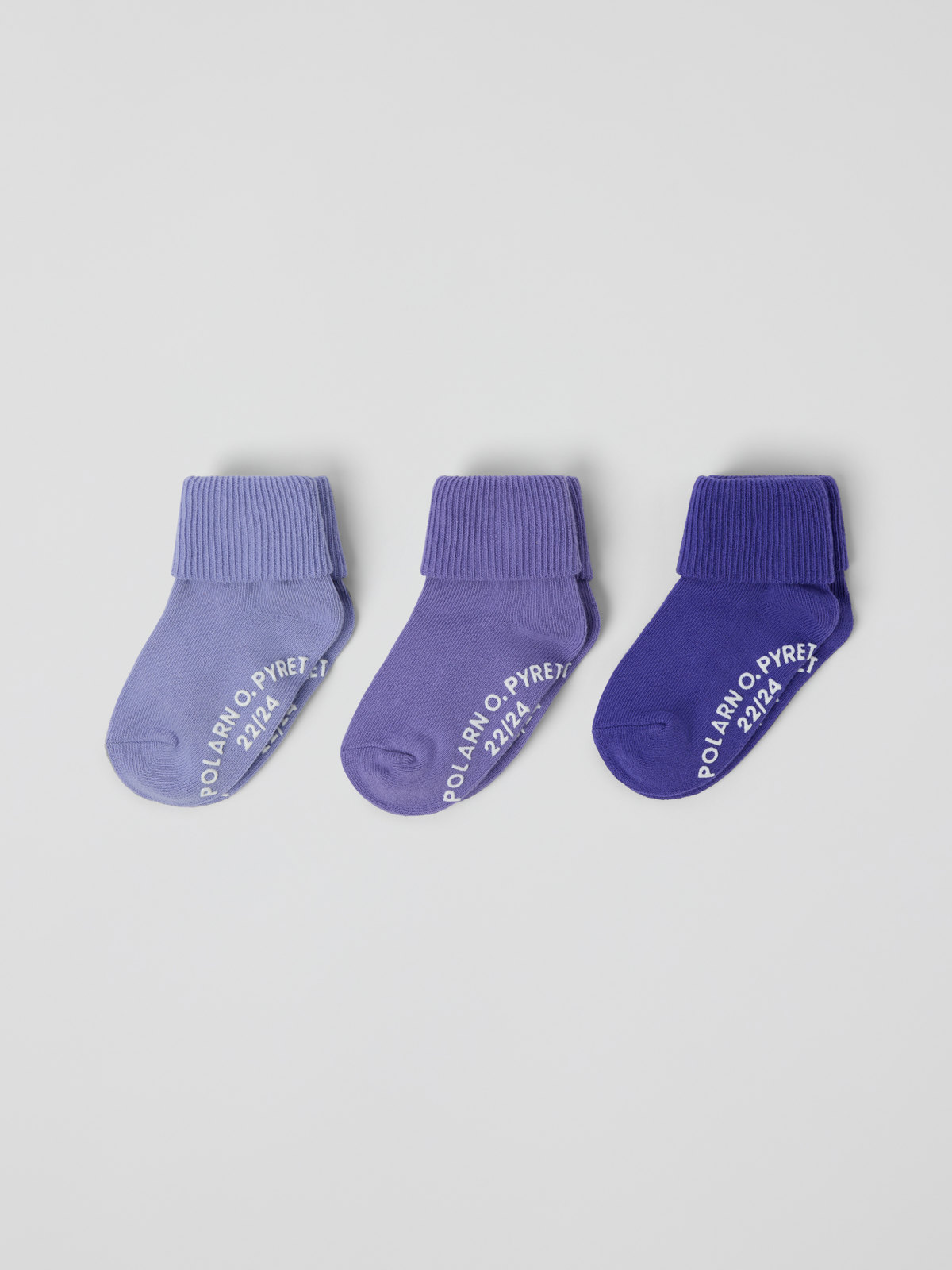 Fyll på sokkeskuffen med en 3-pakning sokker med sklisikring. Sokkene er fremstilt i myk økologisk bomull og har en vrangbord som kan brettes opp eller ned.