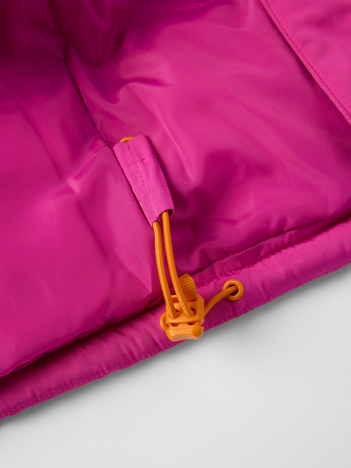 • Tykk og varm vattering i resirkulert polyester, som kombinert med det tettvevde stoffet stenger ute noe vind, lettere regn og snø