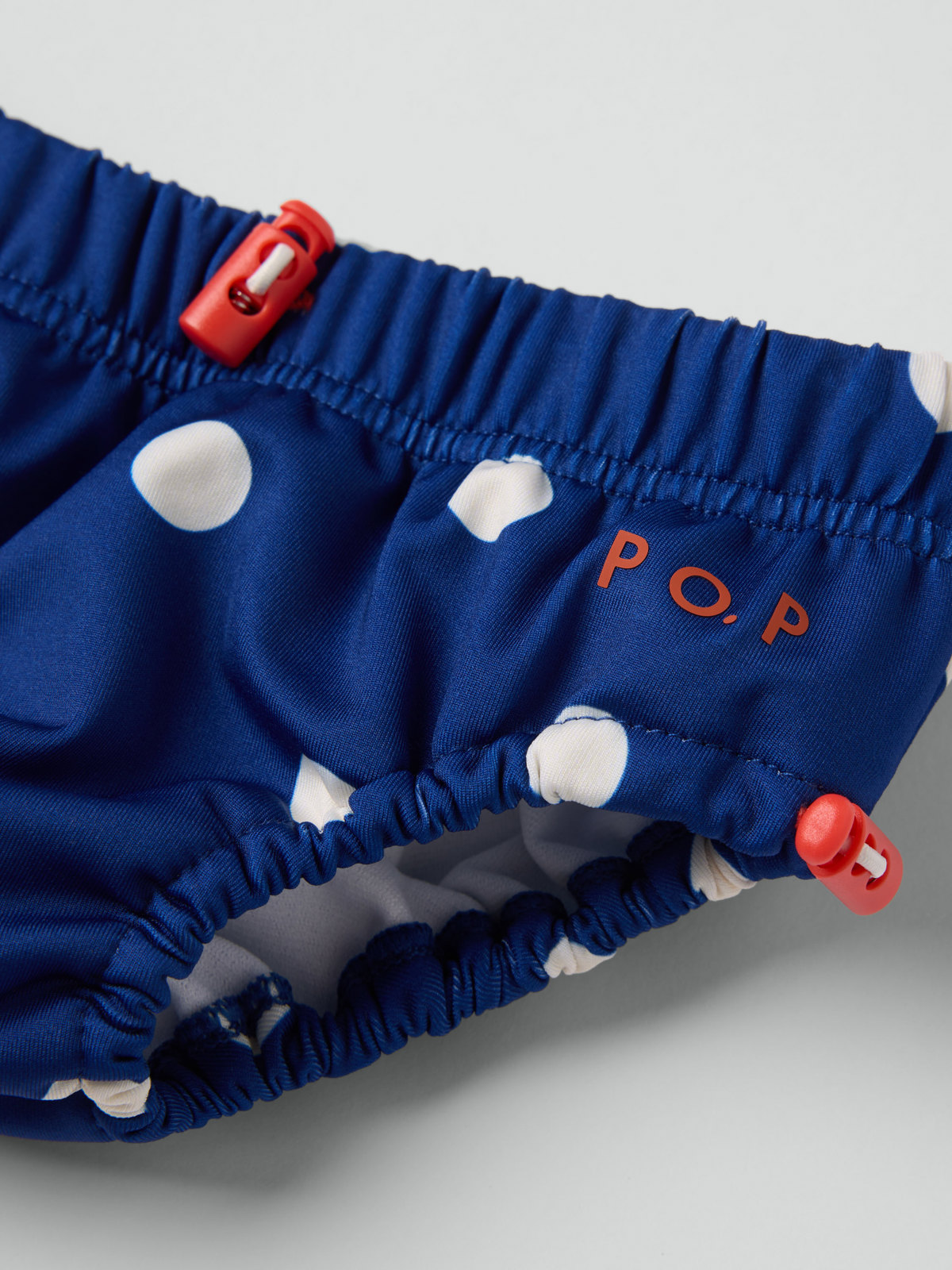 Prikkete badebleie i resirkulert materiale – perfekt til babysvømming eller en dag på stranden! Badebleien har ekstra fôr som tar hånd om små uhell, og rundt benåpningene er det justerbar strikk. Midjen er elastisk og kan tilpasses på innsiden med knytebånd. prickig
