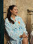Morgenkåpen har to store lommer foran og lukkes med knytebånd.