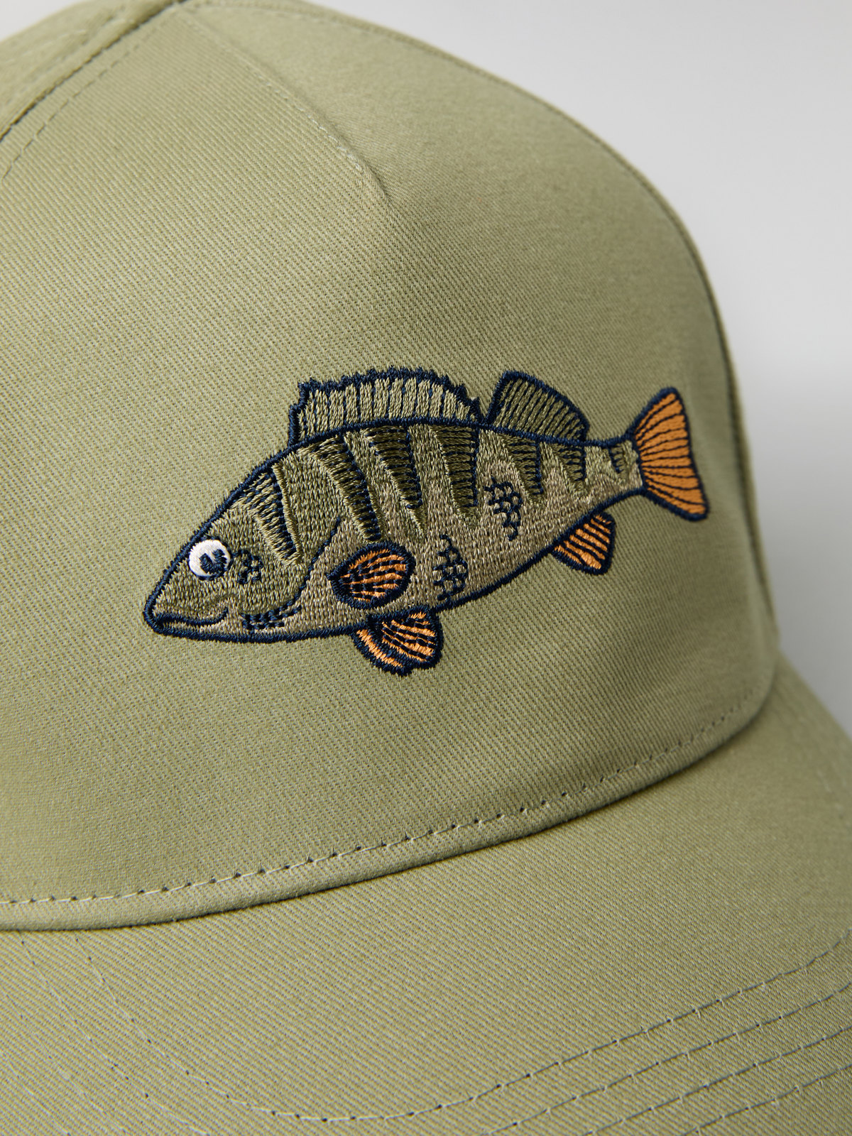 Klassisk caps i 100 % økologisk bomull med fint broderi. Capsen har broderte luftehull og finnes i fire forskjellige farger. Hver farge har et broderi med unikt motiv som matcher fint med hele kolleksjonen. Størrelsen kan justeres med borrelås bak.