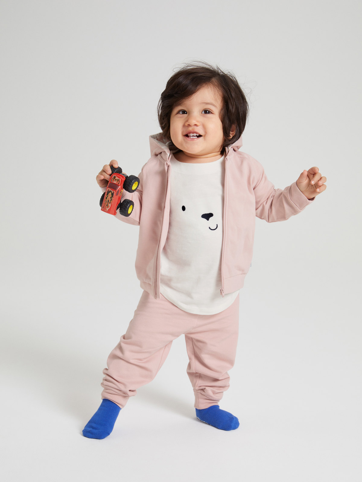 OBS! Dette produktet har en produksjonsfeil. Ensfarget joggebukse i 100 % økologisk bomull med myk børstet innside – behagelig favoritt å elske lenge!
