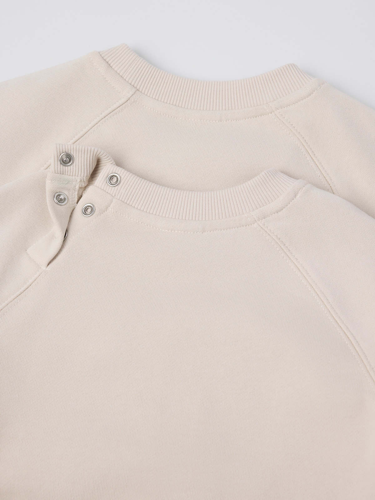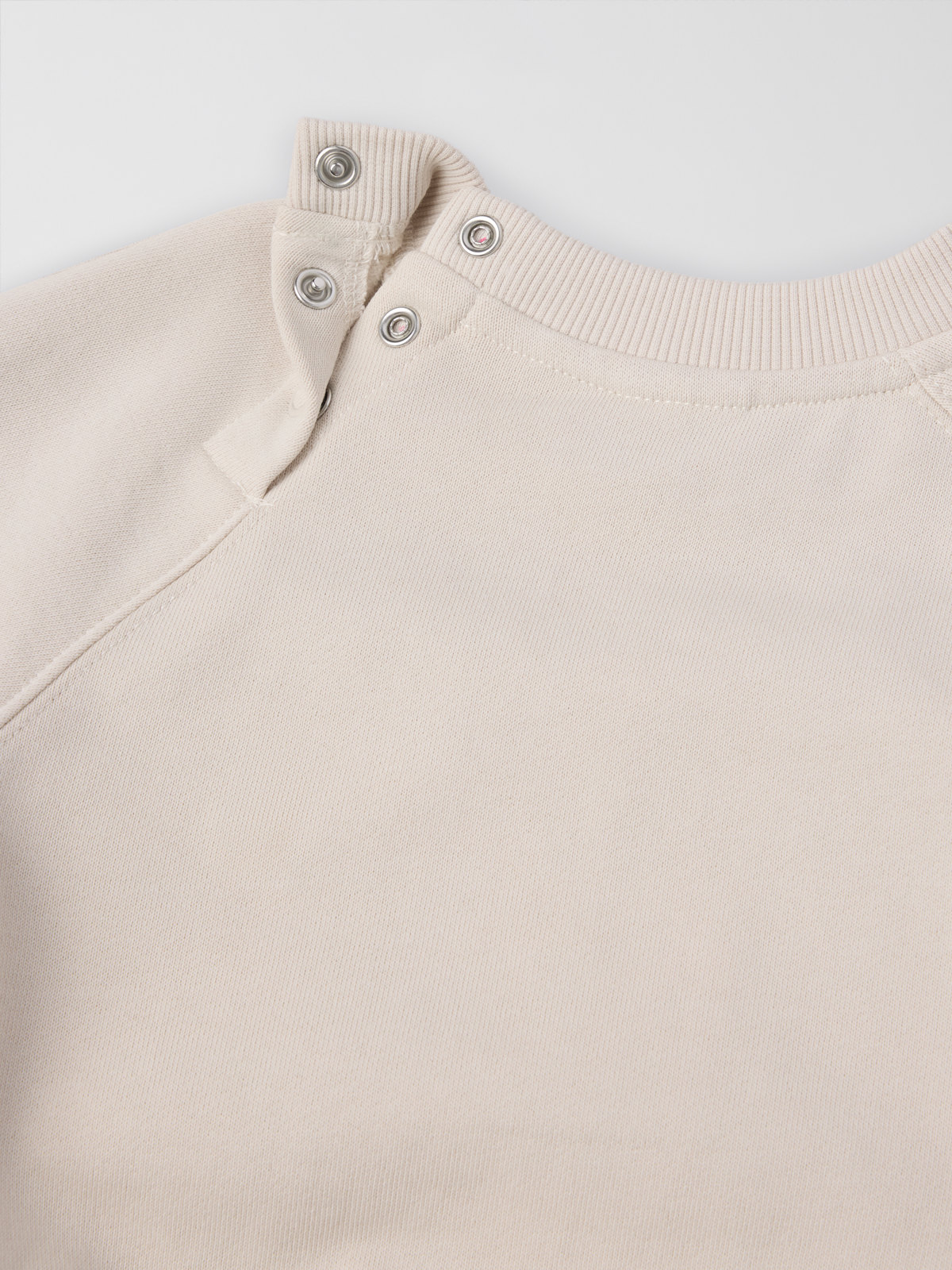 Størrelsene 86–92 har trykknapper bak på den ene skulderen for enklere klesskift.
