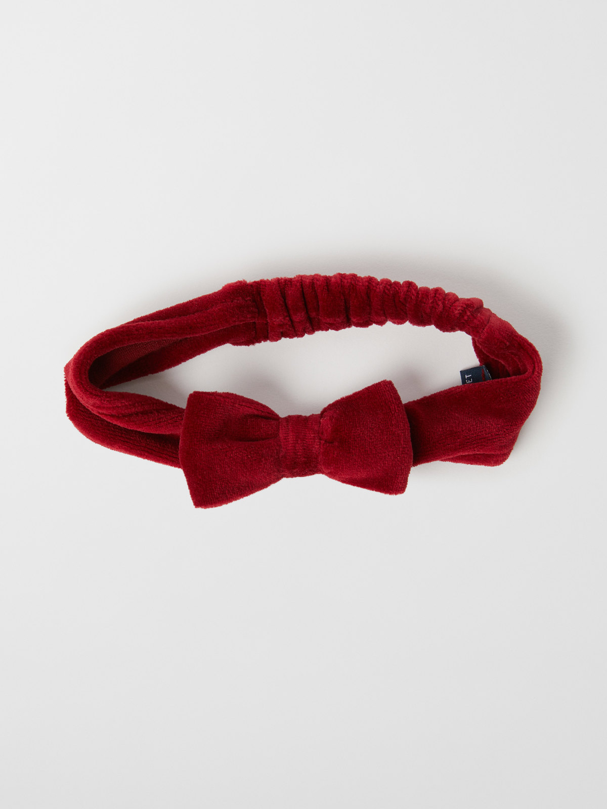 Elastiskt hårbånd i myk velur. Hårbåndet er i 100 % økologisk bomull og er ensfarget, og har en fin sløyfe. Passer perfekt til både hverdags og festlige anledninger!