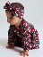 Elastiskt hårbånd i myk økologisk bomullstrikot. Hårbåndet er helmønstret med blomster og pyntet med en fin sløyfe.