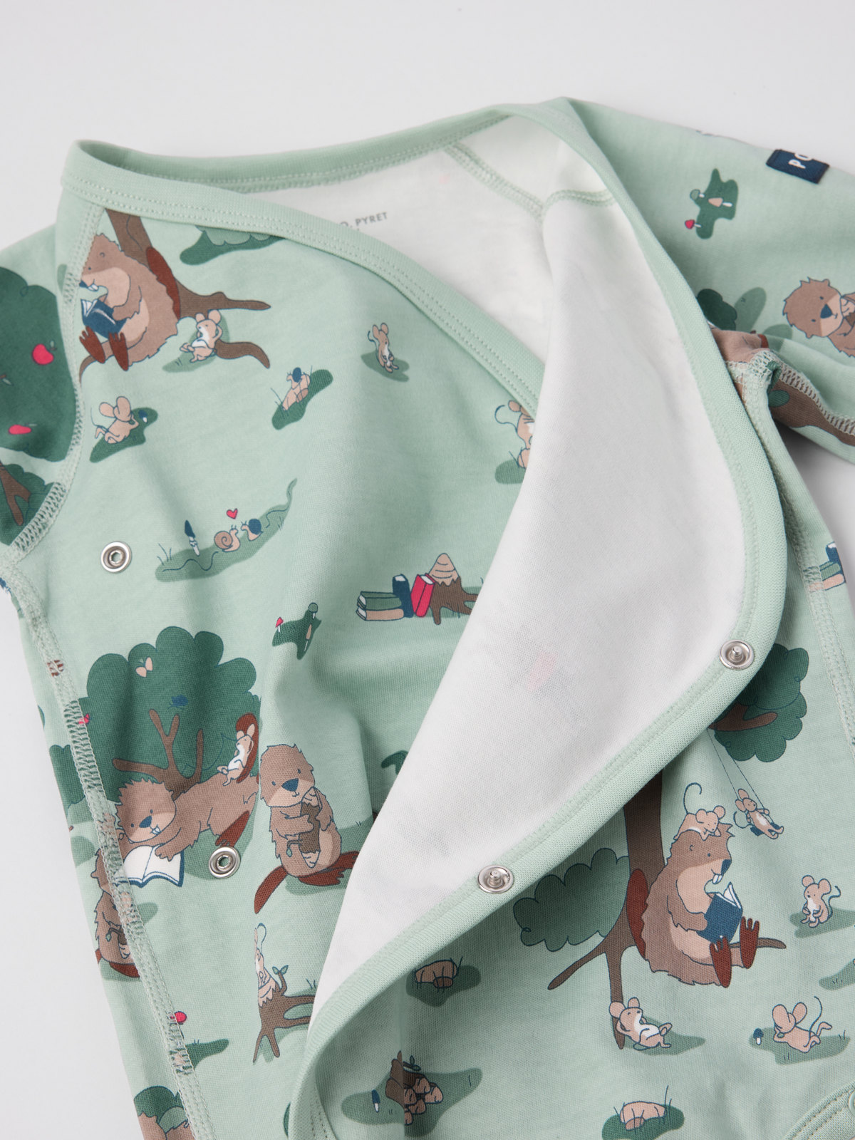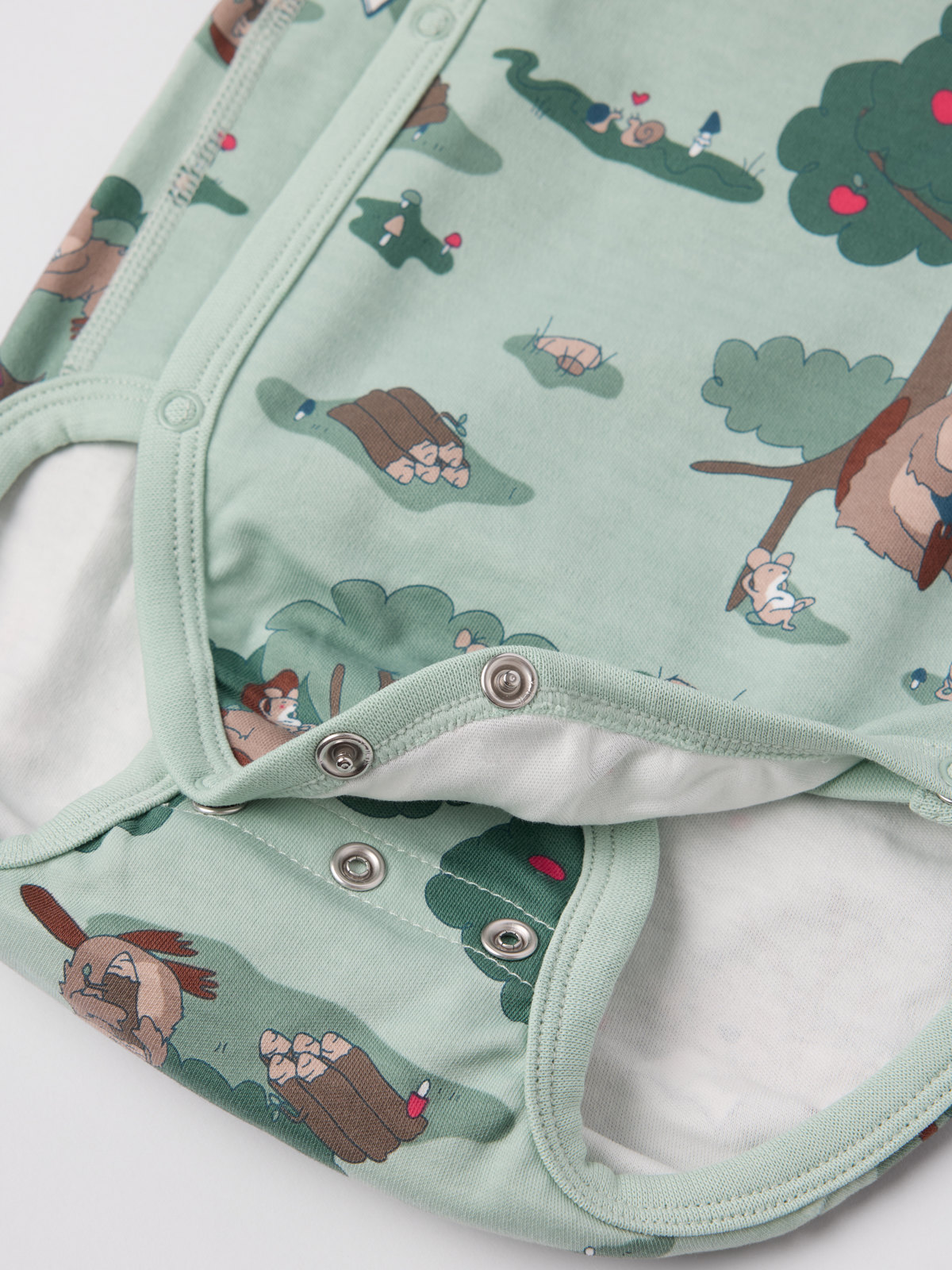 Forlengbar omslagsbody i 100 % økologisk bomull. Den smarte løsningen med en ekstra rad trykknapper i skrittet og nedbrettbar vrangbord nederst på ermene gjør at bodyen kan vokse med babyen!