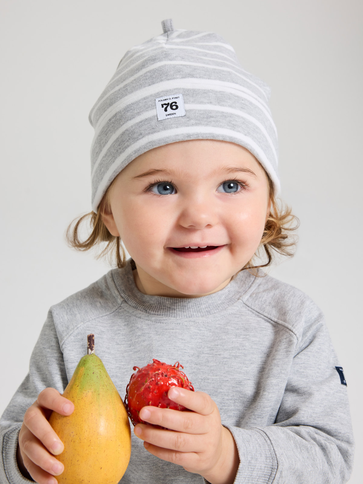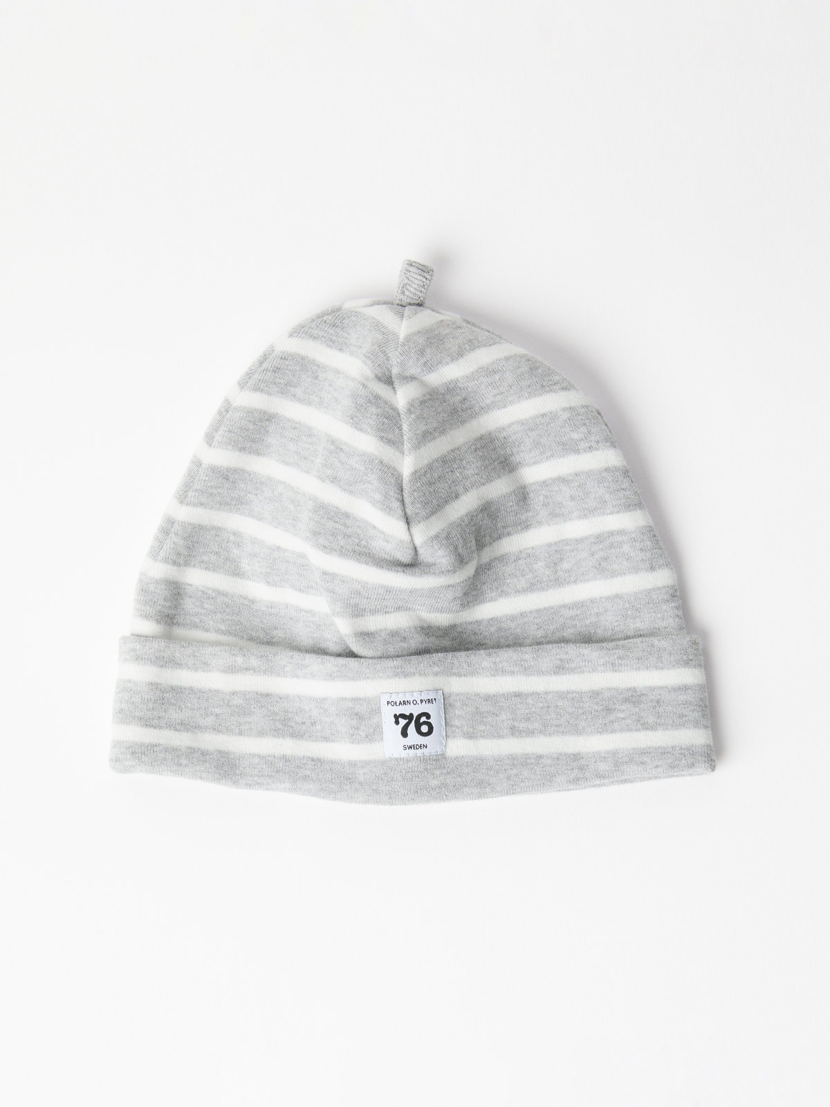Stripet lue i 100 % økologisk bomull. Luen har våre klassiske striper og en oppbrett som kan justeres etter babyens hodestørrelse.