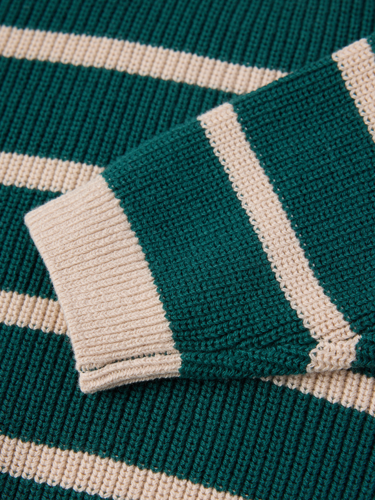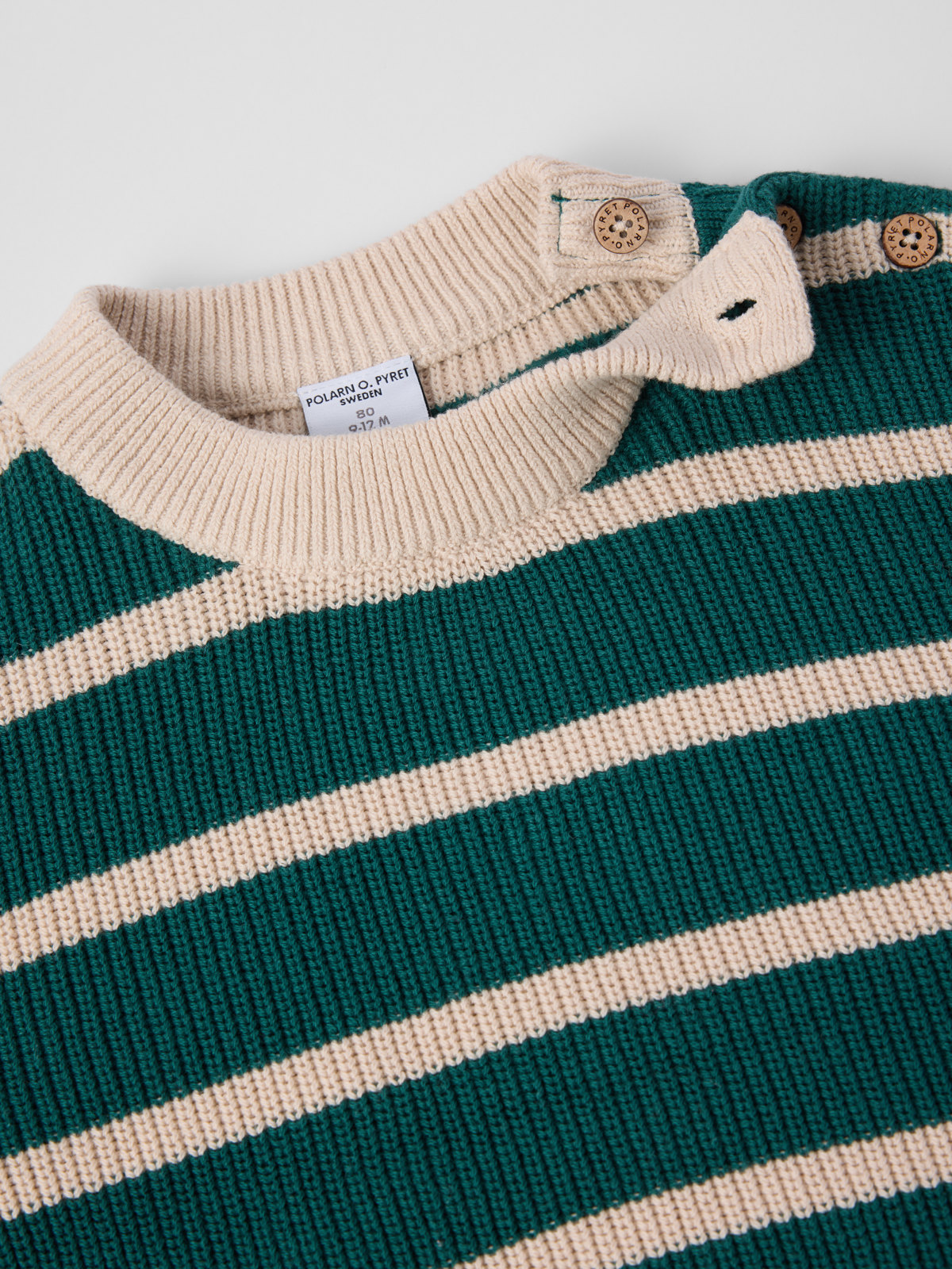 Strikket genser i 100 % økologisk bomull. En skikkelig deilig høstfavoritt. Genseren har ribbestrikket vrangbord i halsringningen og nederst på ermene.