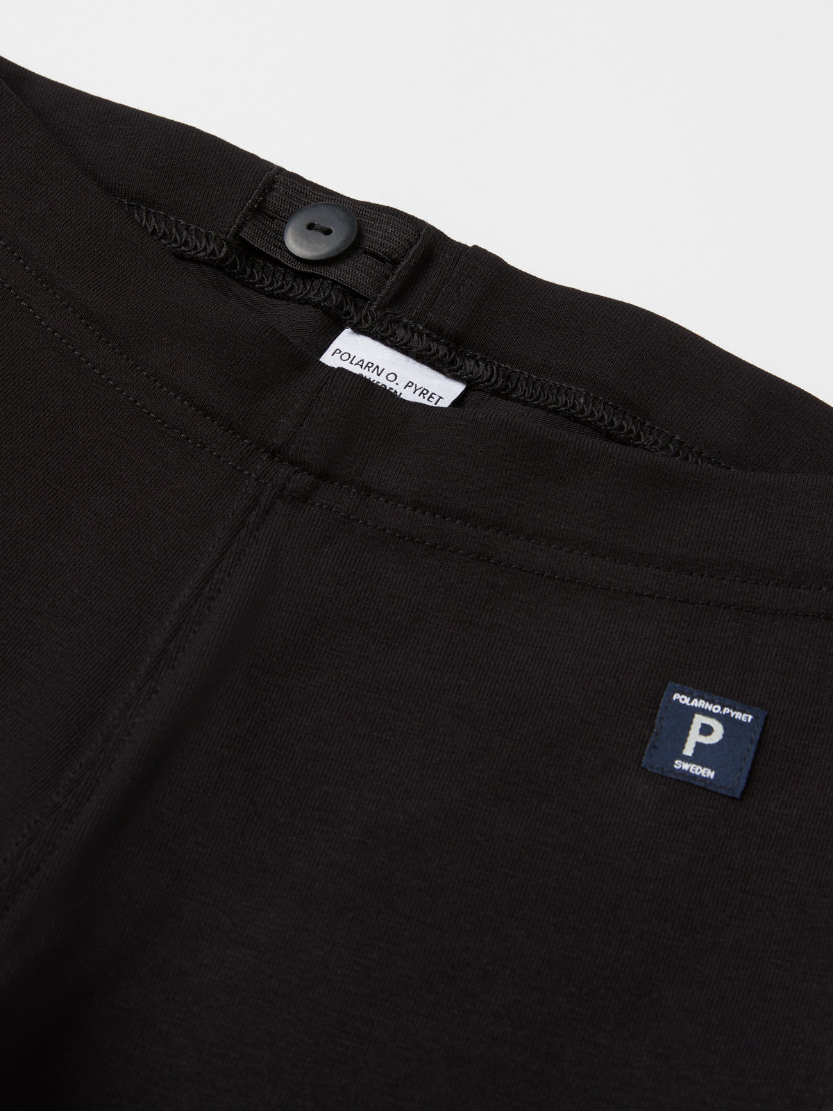 Vår klassiske ensfargede tights – et av våre mest populære produkter! Den er fremstilt i myk økologisk bomullstrikot og kan reguleres i midjen med innvendig knapphullsstrikk.