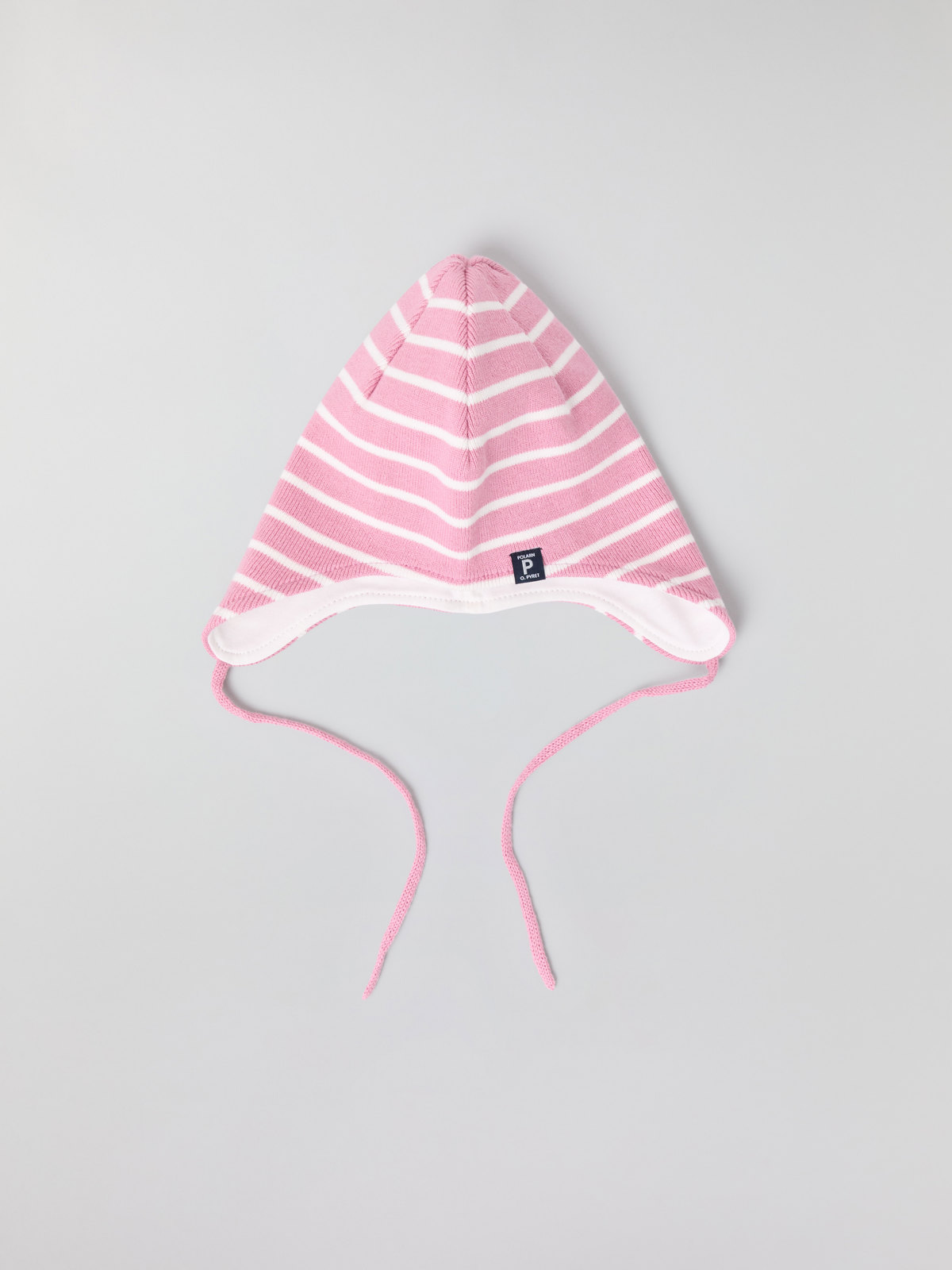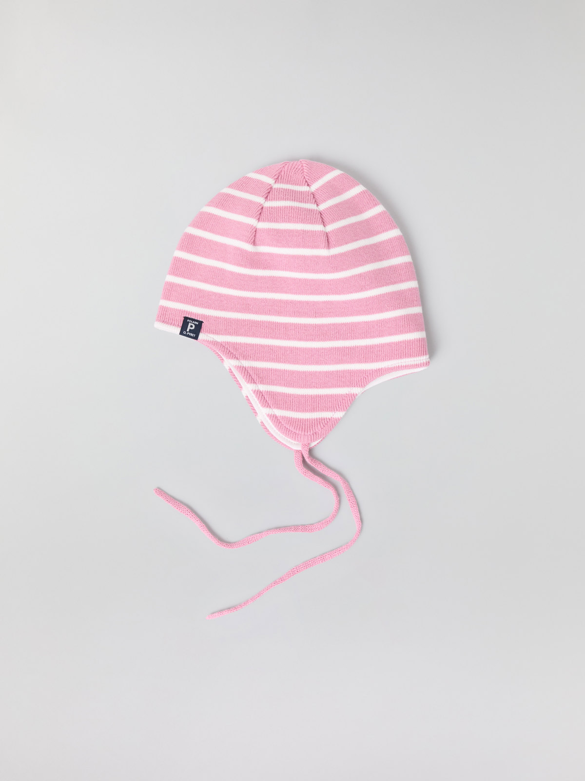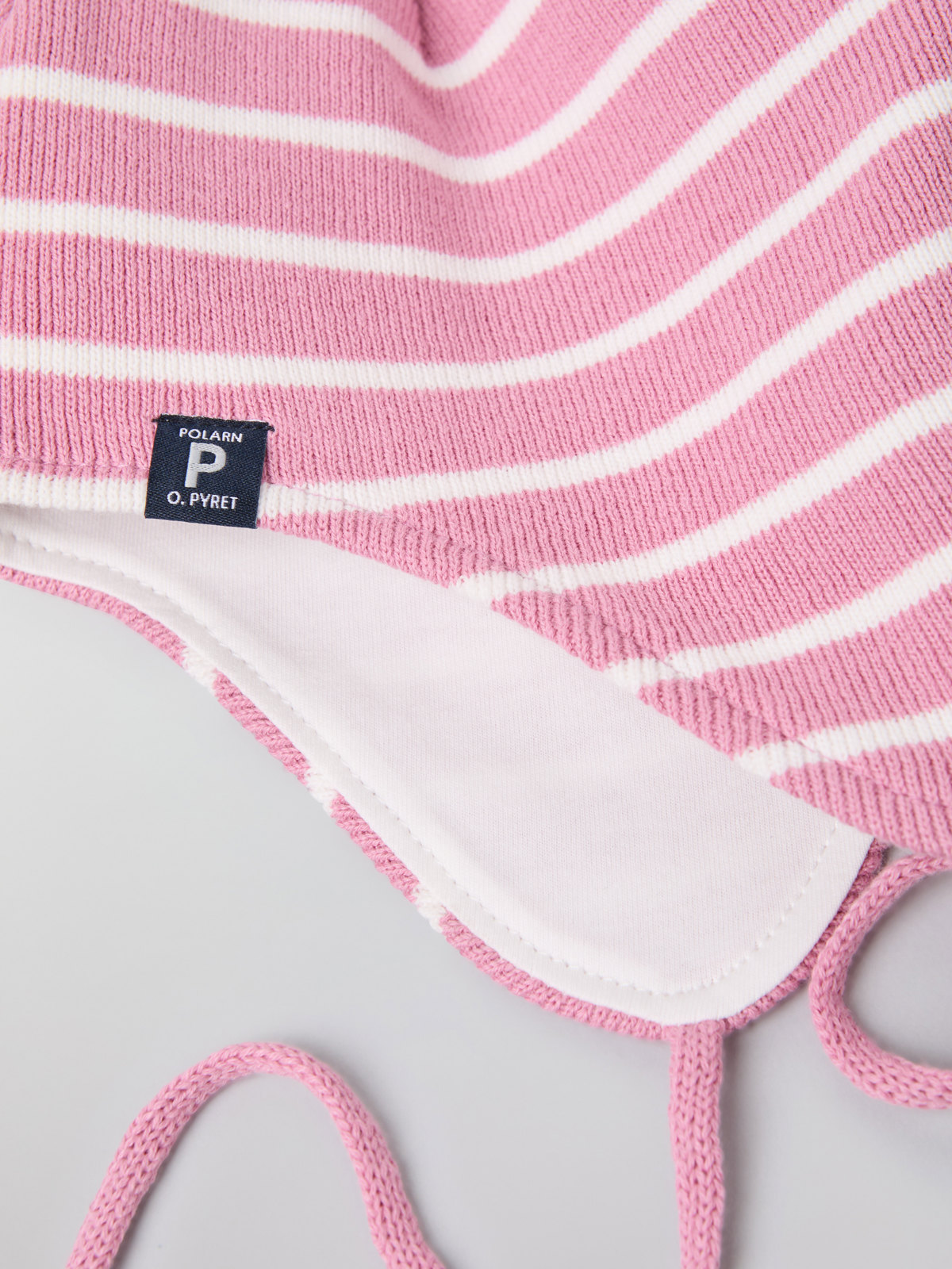 Luen har våre klassiske striper og går godt ned over ørene. Det myke knytebåndet holder luen på plass.