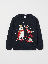 Genseren har et stort vinterinspirert trykk på forstykket og ribbestrikket vrangbord i halsringningen og nederst på ermene.