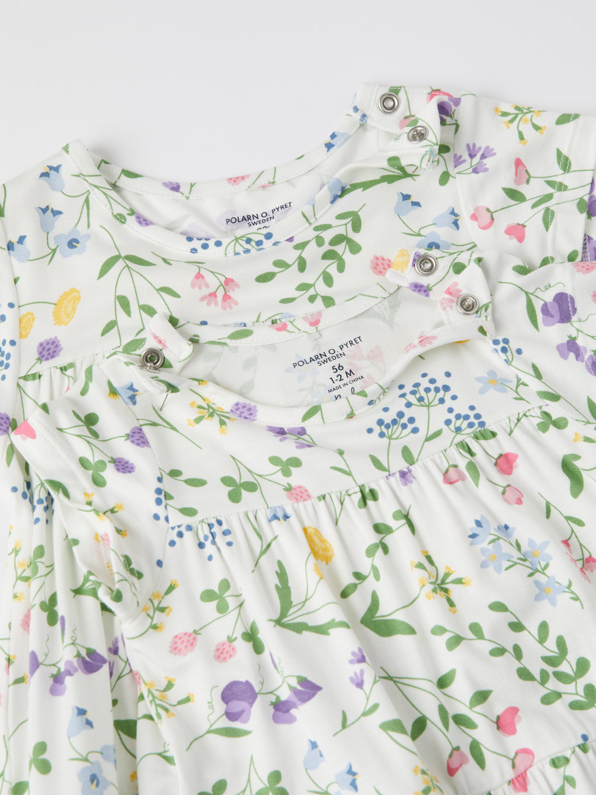 Størrelsene 50–62 har trykknapper på begge skuldrene.