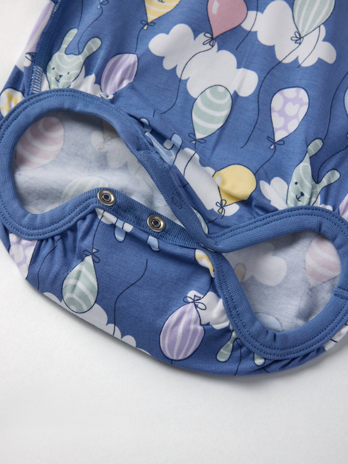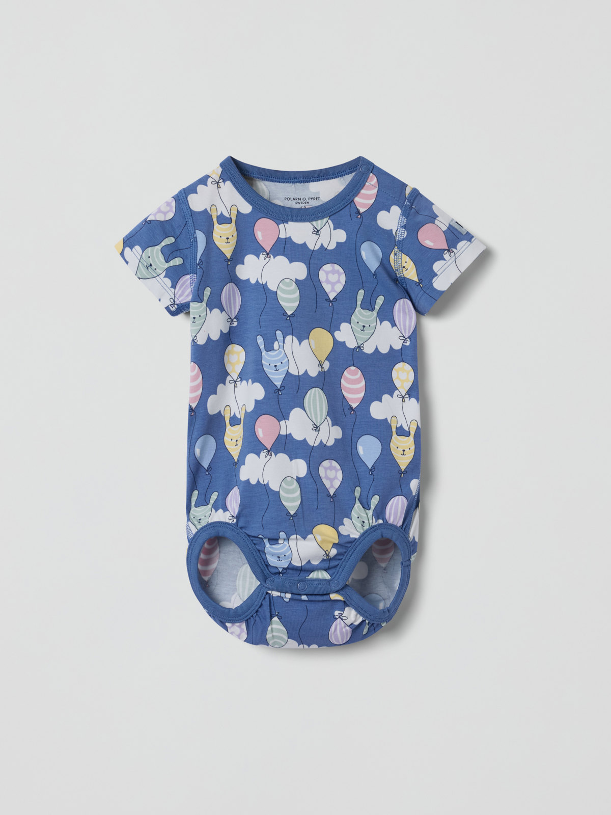 Kortermet body i myk økologisk bomull, med ekstra myke og flate sømmer som ikke gnager mot følsom hud. Bodyen er helmønstret med ballonger.