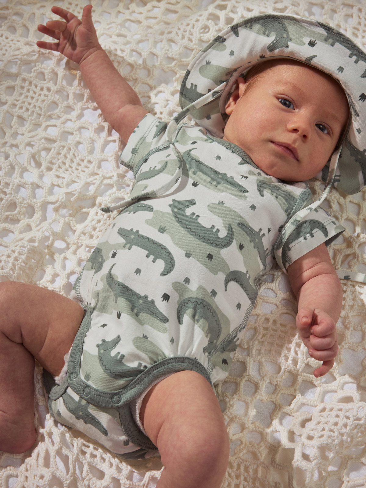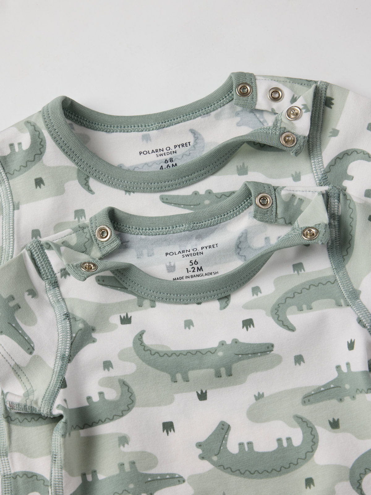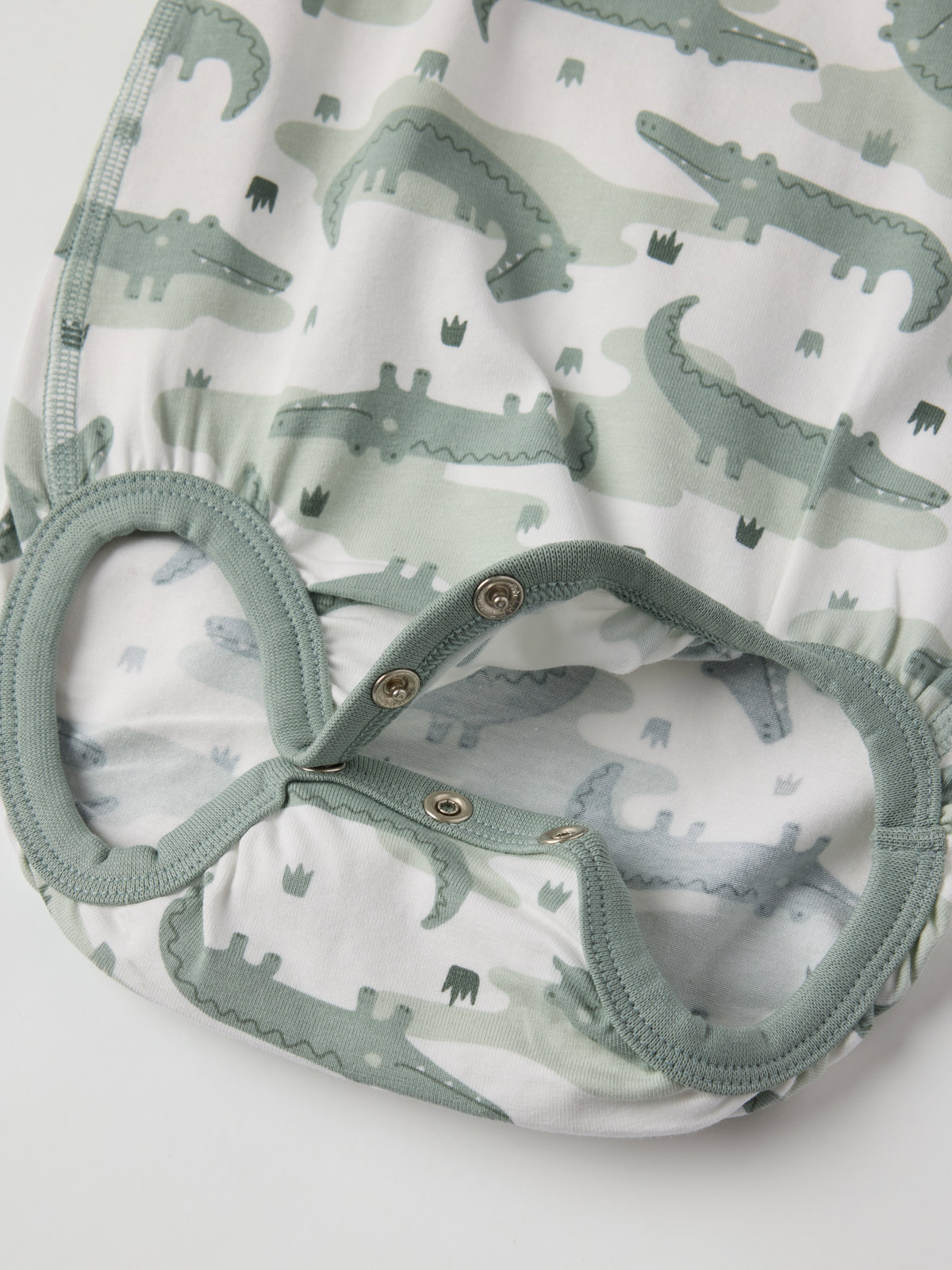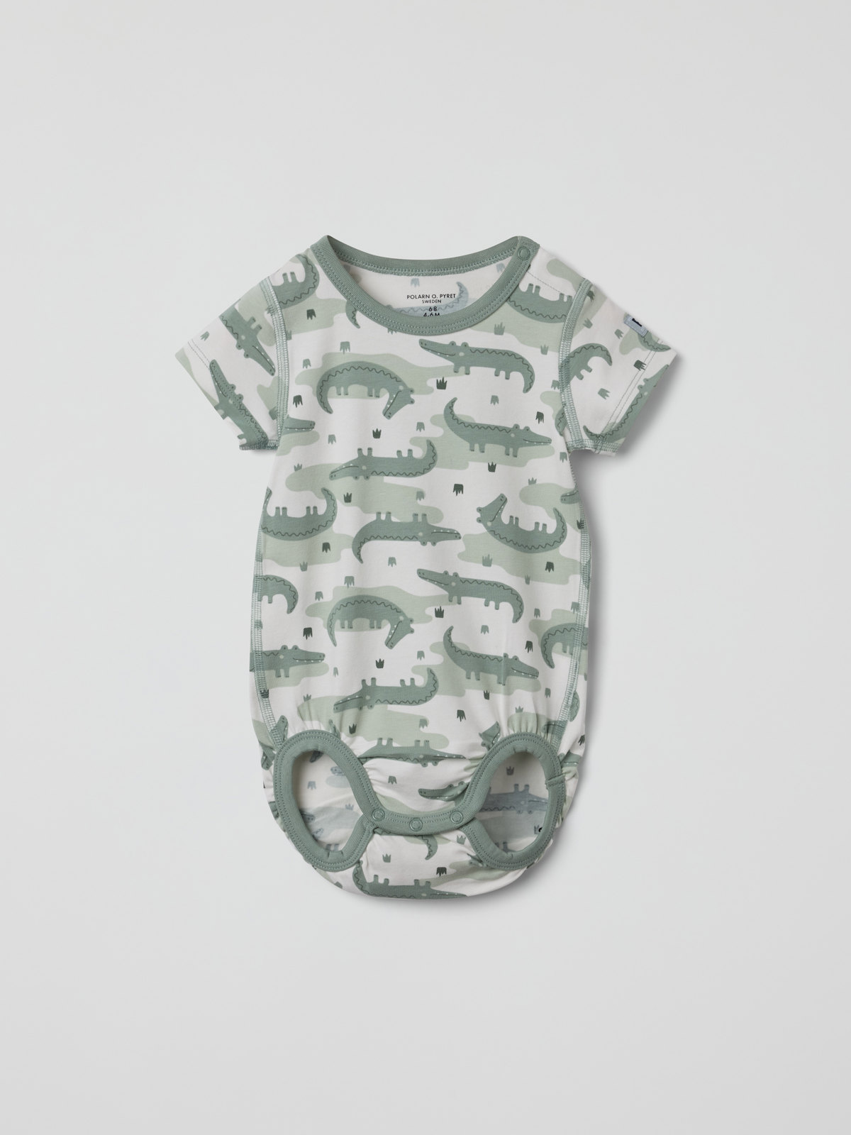 Kortermet body i myk økologisk bomull, med ekstra myke sømmer og skånsom mot følsom hud. Bodyen er helmønstret med krokodiller – en utrolig koselig sommerfavoritt! Trykknappene på den ene skulderen og i skrittet gir enklere klesskift.