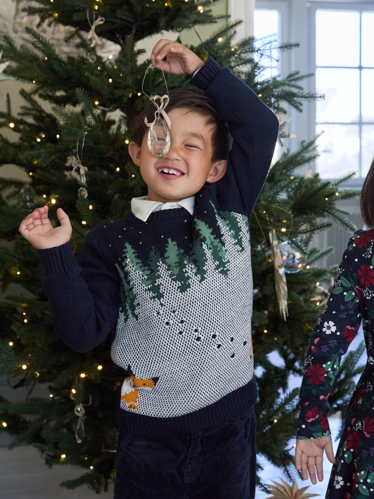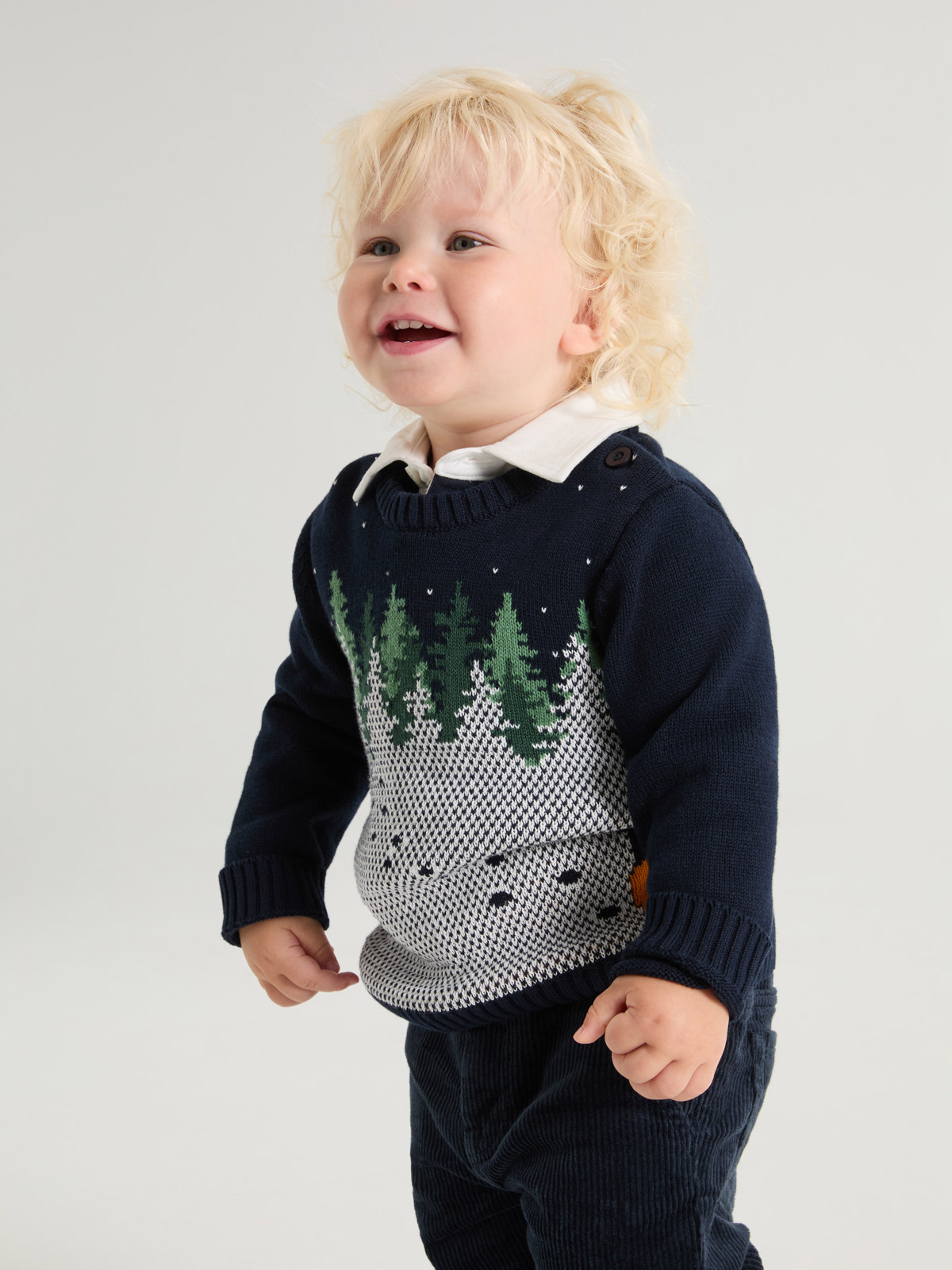 Jaquardstrikket genser i 100 % økologisk bomull med fint vinterinspirert mønster. Den ultimate julegenseren!