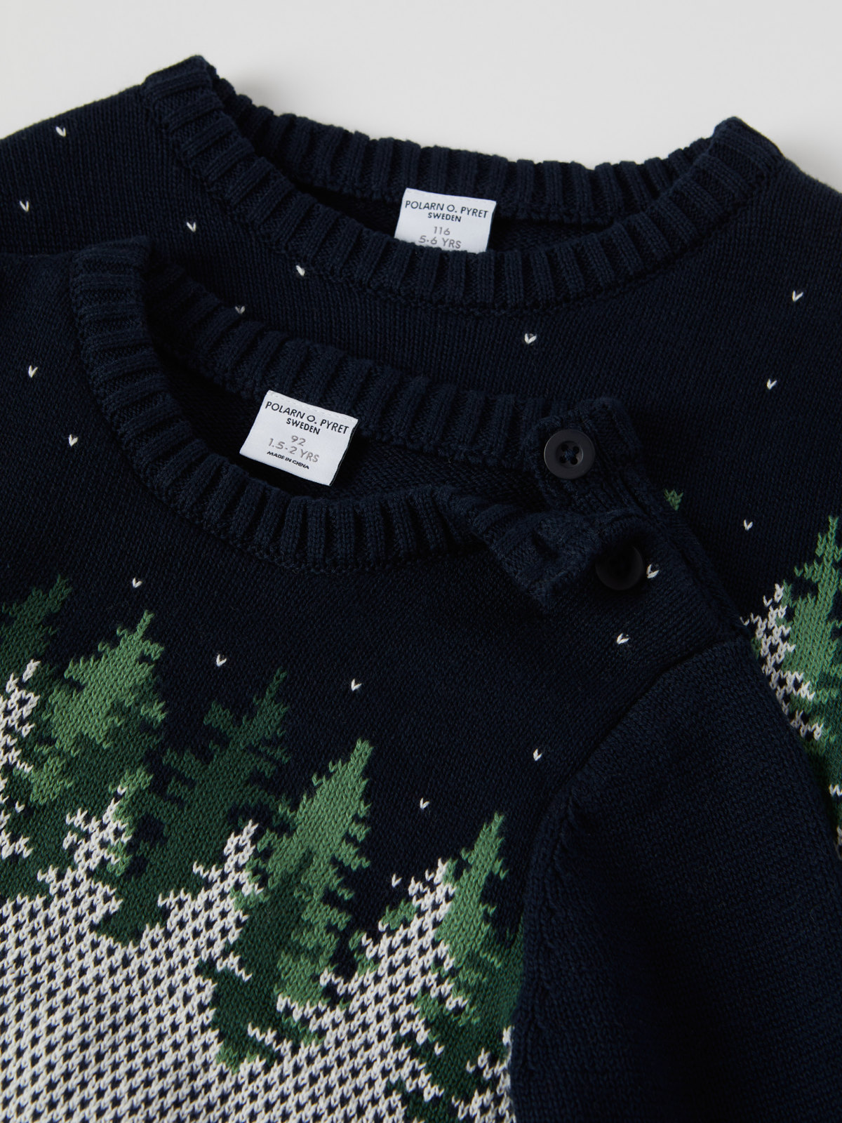Størrelsene 86-92 har knapper på den ene skulderen for enklere klesskift.