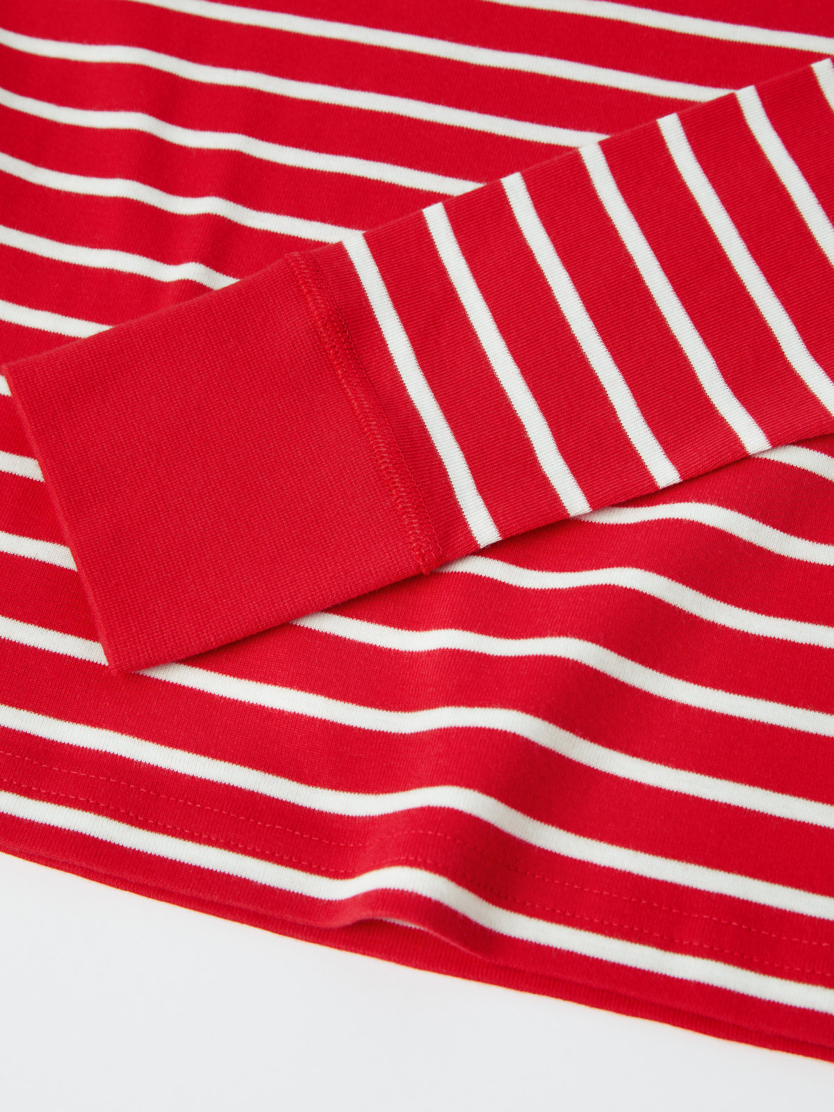 Stripet genser i 100 % økologisk bomull. Genseren har våre klassiske striper og myk ribbestrikket vrangbord nederst på ermene.