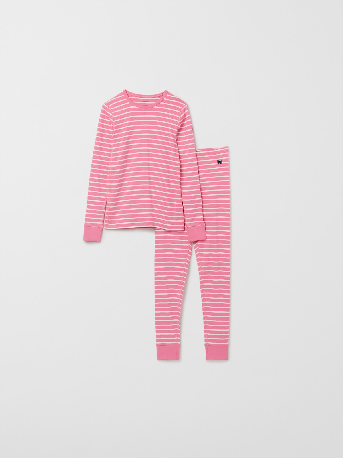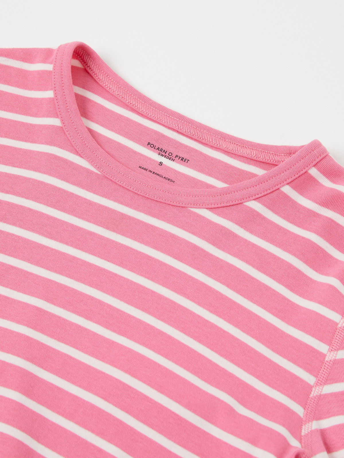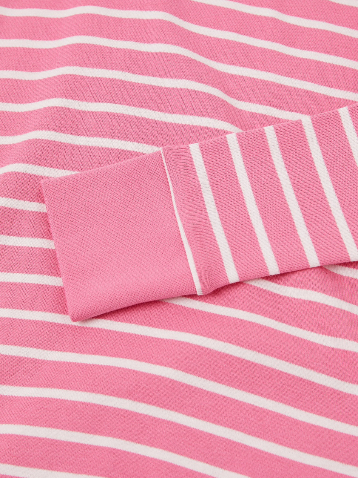 Sett med overdel og bukse i våre klassiske striper – i voksenstørrelser. Overdelen har myk, ribbestrikket vrangbord rundt halsringningen og nederst på ermene. Buksen har elastisk midje og myk ribbestrikket vrangbord nederst på bena.