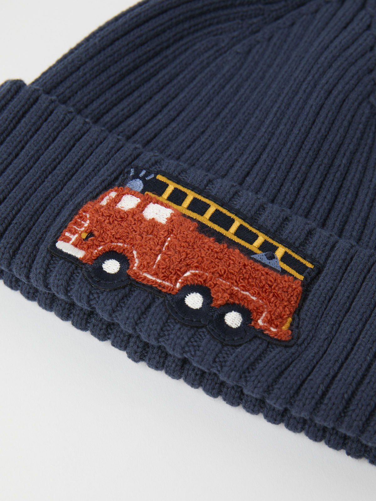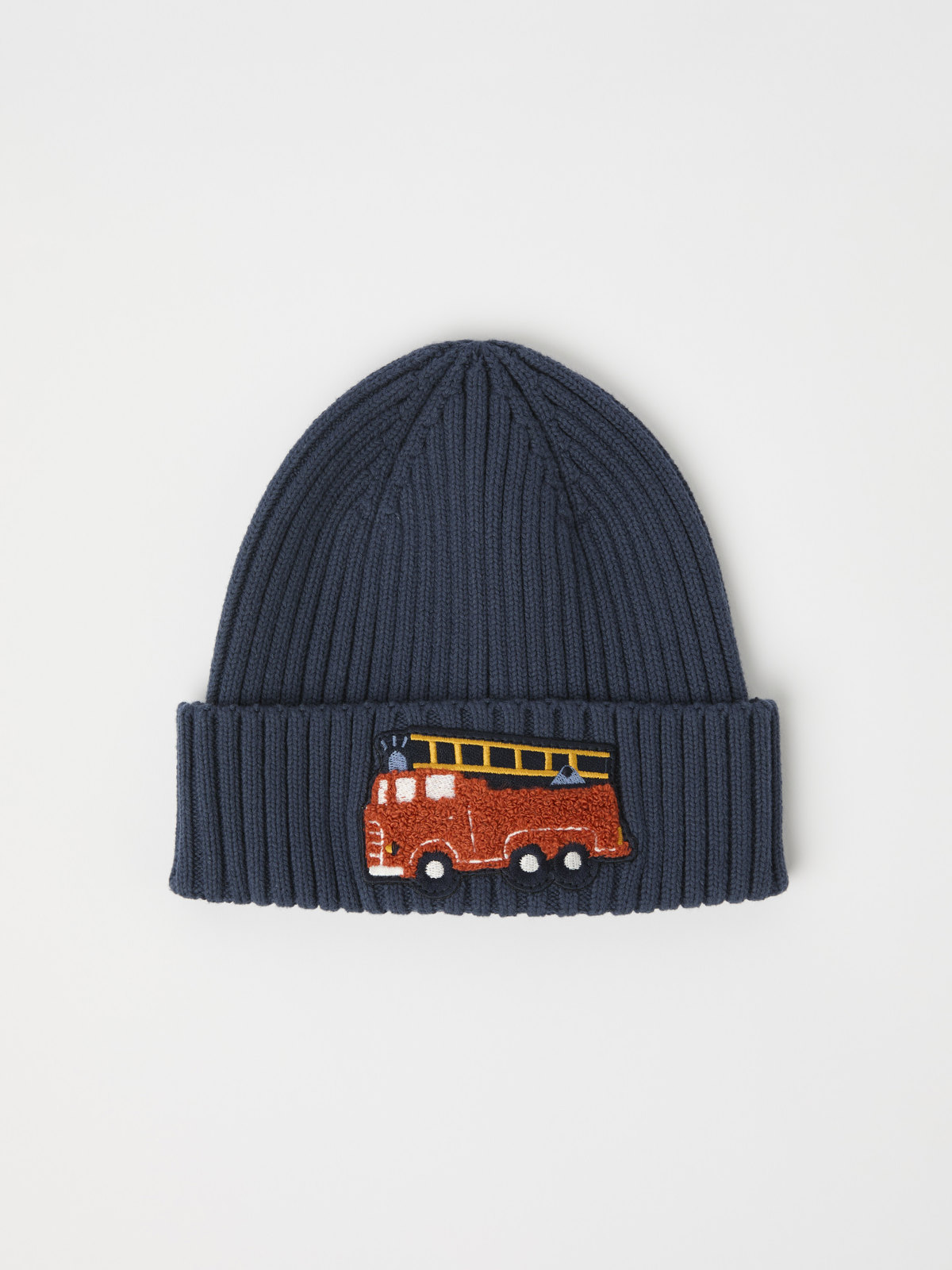 Ribbestrikket lue i økologisk bomull – perfekt til småkjølige høst- og vårdager. Luen har oppbrett nederst og en brodert applikasjon foran.