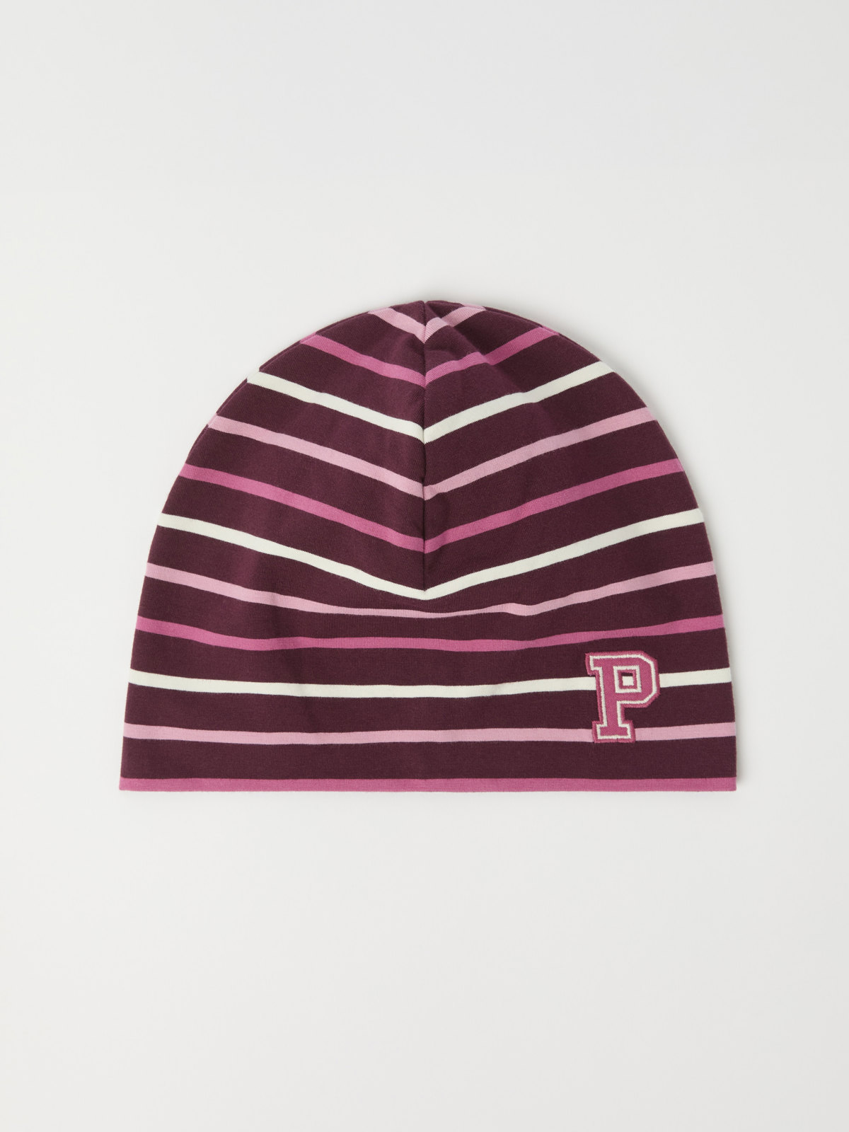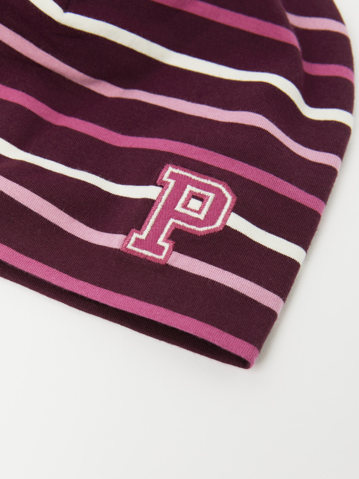 Tynn, flerstripet trikotlue i myk økologisk bomull. Luen har våre klassiske striper og en P-applikasjon foran.