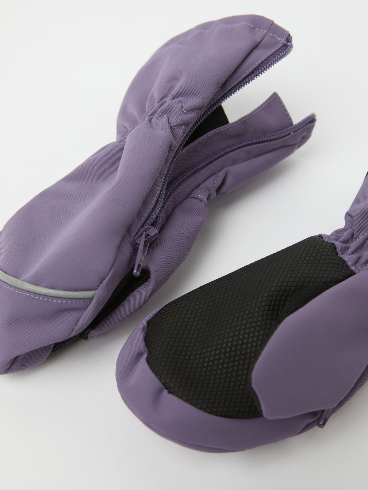 Vindtette skallvotter med glidelås på siden som gjør dem enklere å ta på og av.