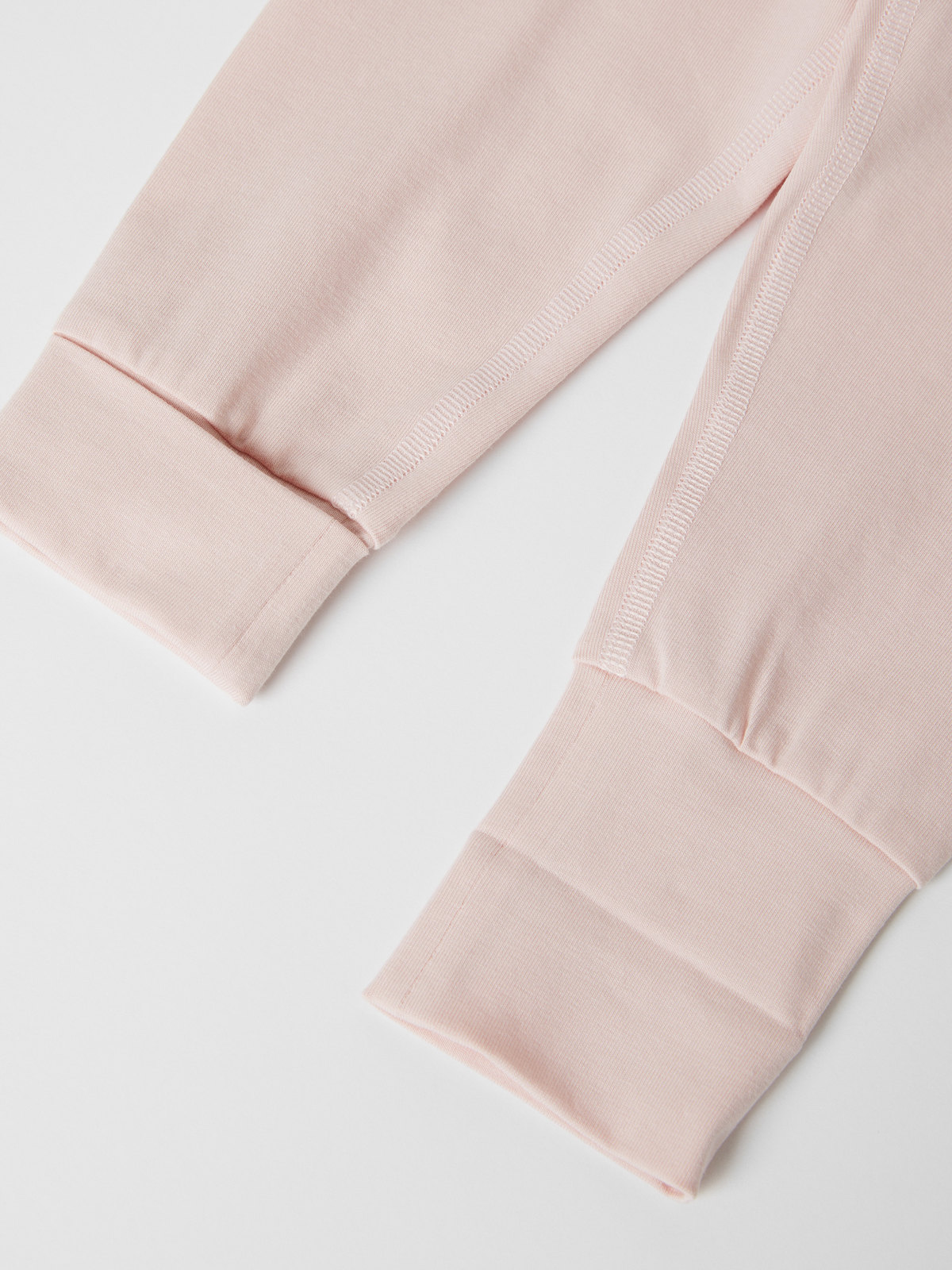 Myk og god bukse som kan vokse med babyen takket være den ekstra lange vrangborden i midjen og nederst på bena, som kan brettes opp eller ned.