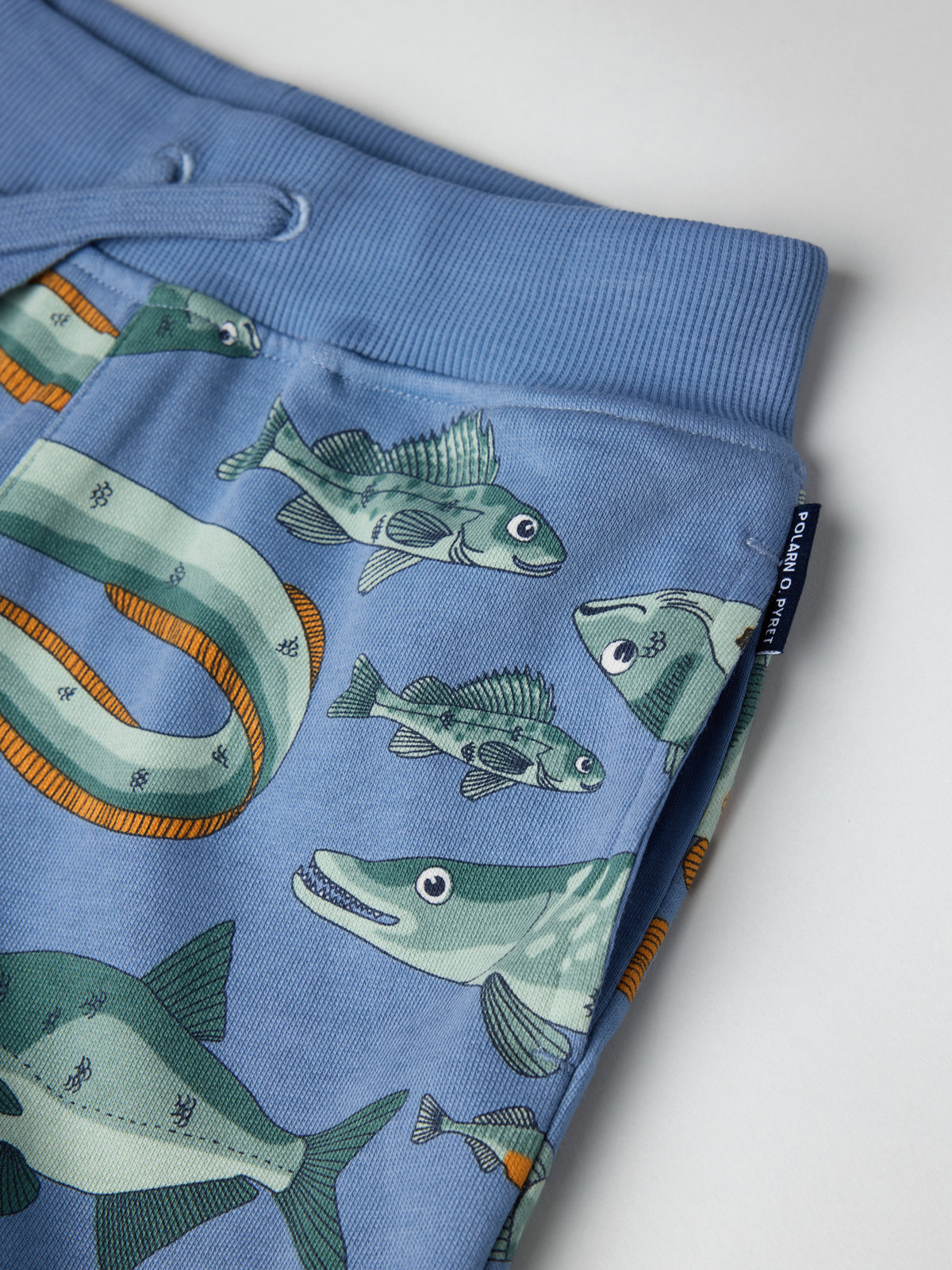 Shorts med myk collegekvalitet i 100 % økologisk bomull – et perfekt hverdagsplagg i sommergarderoben! Shortsen er helmønstret med fisker og rekker til knærne. Midjen er elastisk og reguleres med knytebånd.