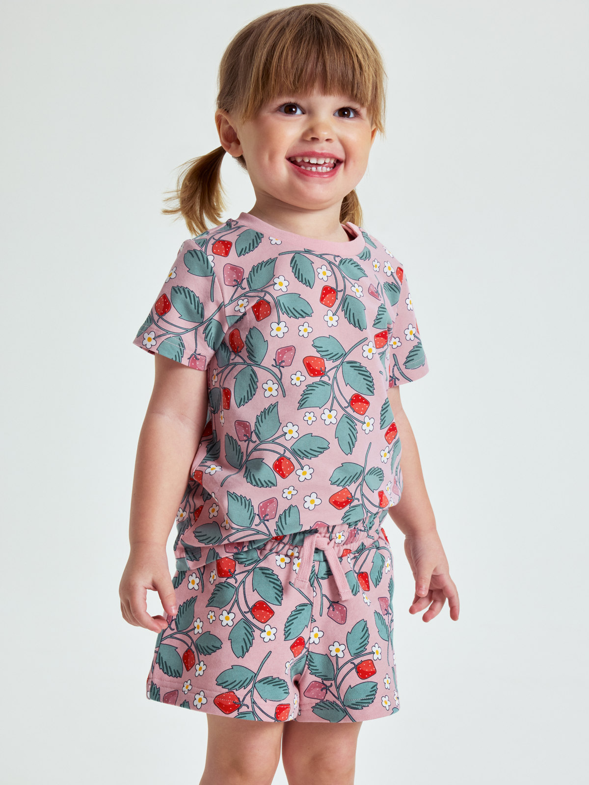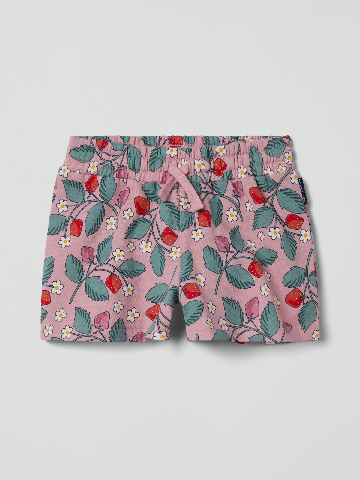 Shorts med myk collegekvalitet i 100 % økologisk bomull – et perfekt hverdagsplagg i sommergarderoben! Shortsen er helmønstret med jordbær og har elastisk midje som kan reguleres med knytebånd.