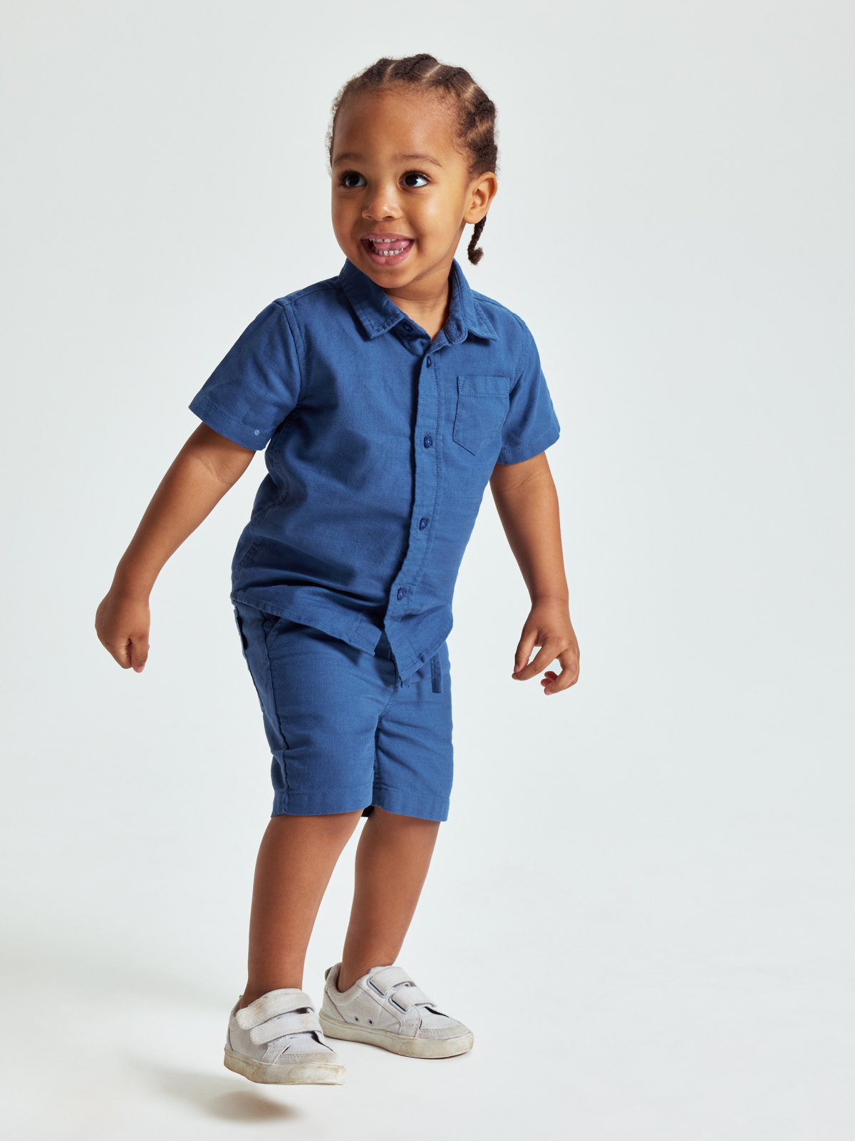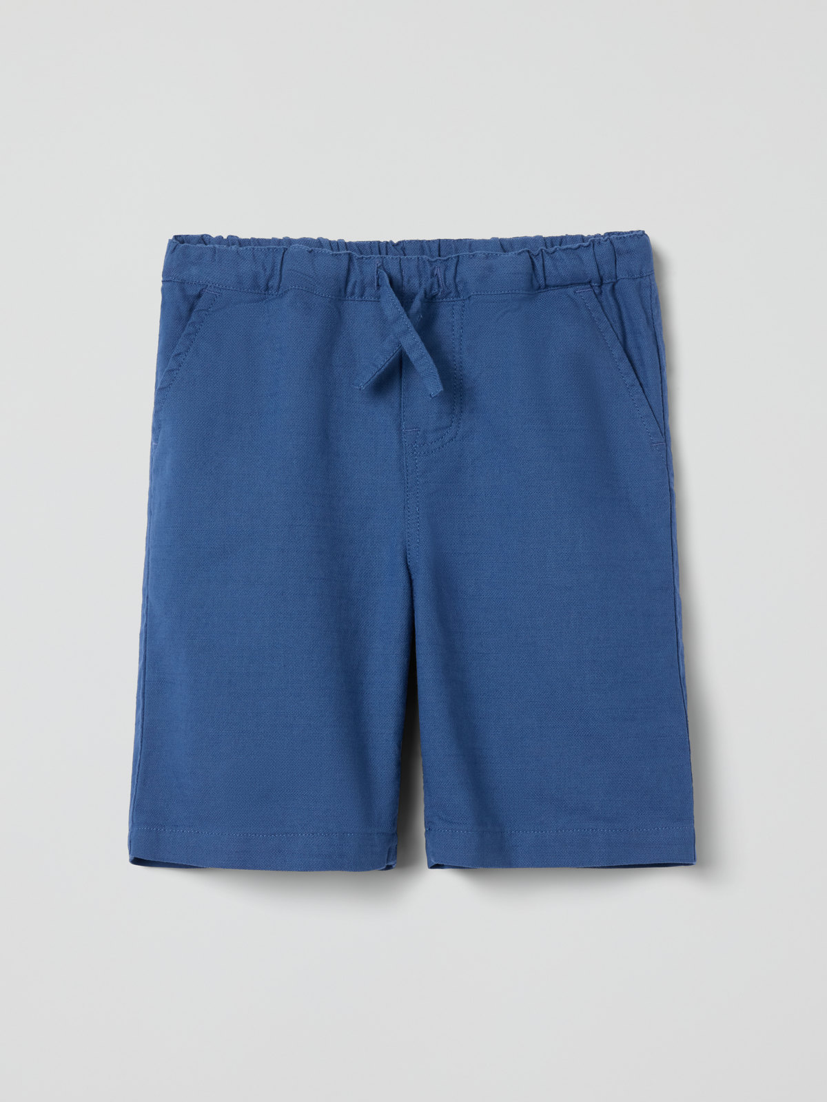 Ensfarget shorts i økologisk bomull med linfølelse – fin til både hverdag og fest. Shortsen har elastisk midje som kan reguleres med knytebånd, og to lommer foran.