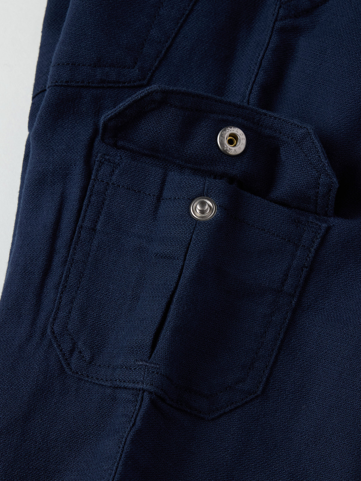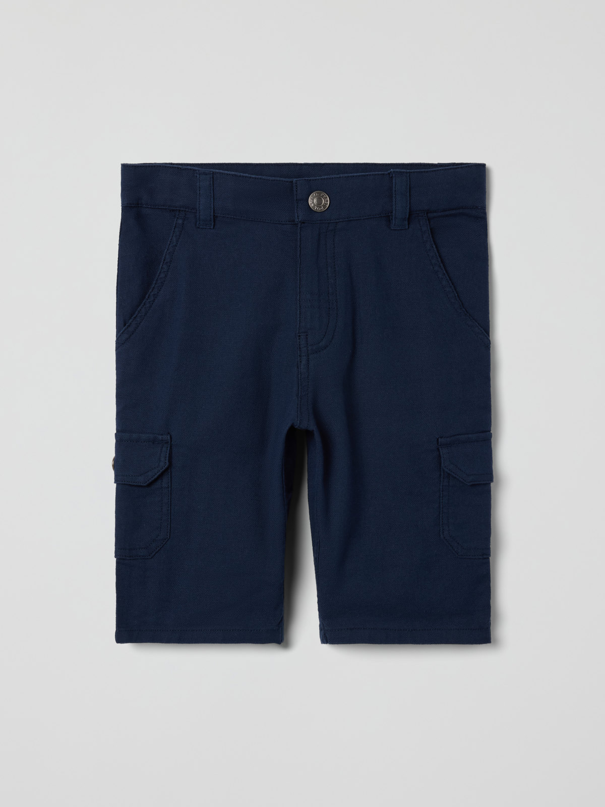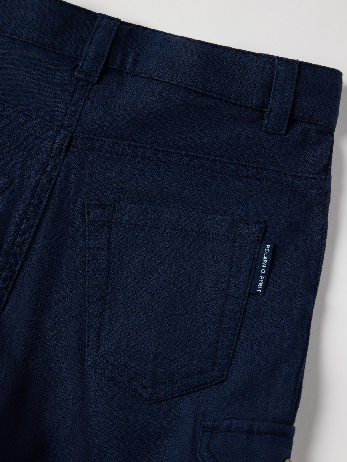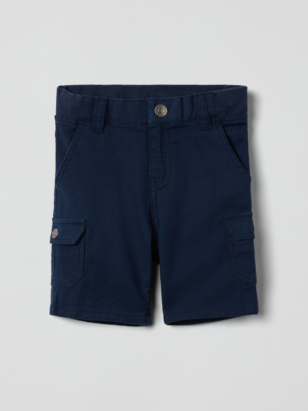 Myk cargoshorts i 100 % økologisk bomull – perfekt for herlige sommereventyr! Shortsen har formsydde knær for behagelig passform og oppbrett nederst på bena. Shortsen har lommer foran og bak, samt to lommer på bena som lukkes med trykknapp.