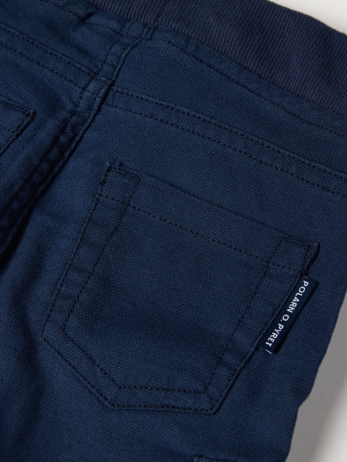 Størrelsene 86-92 har myk ribbestrikket vrangbord i midjen for ekstra komfort.