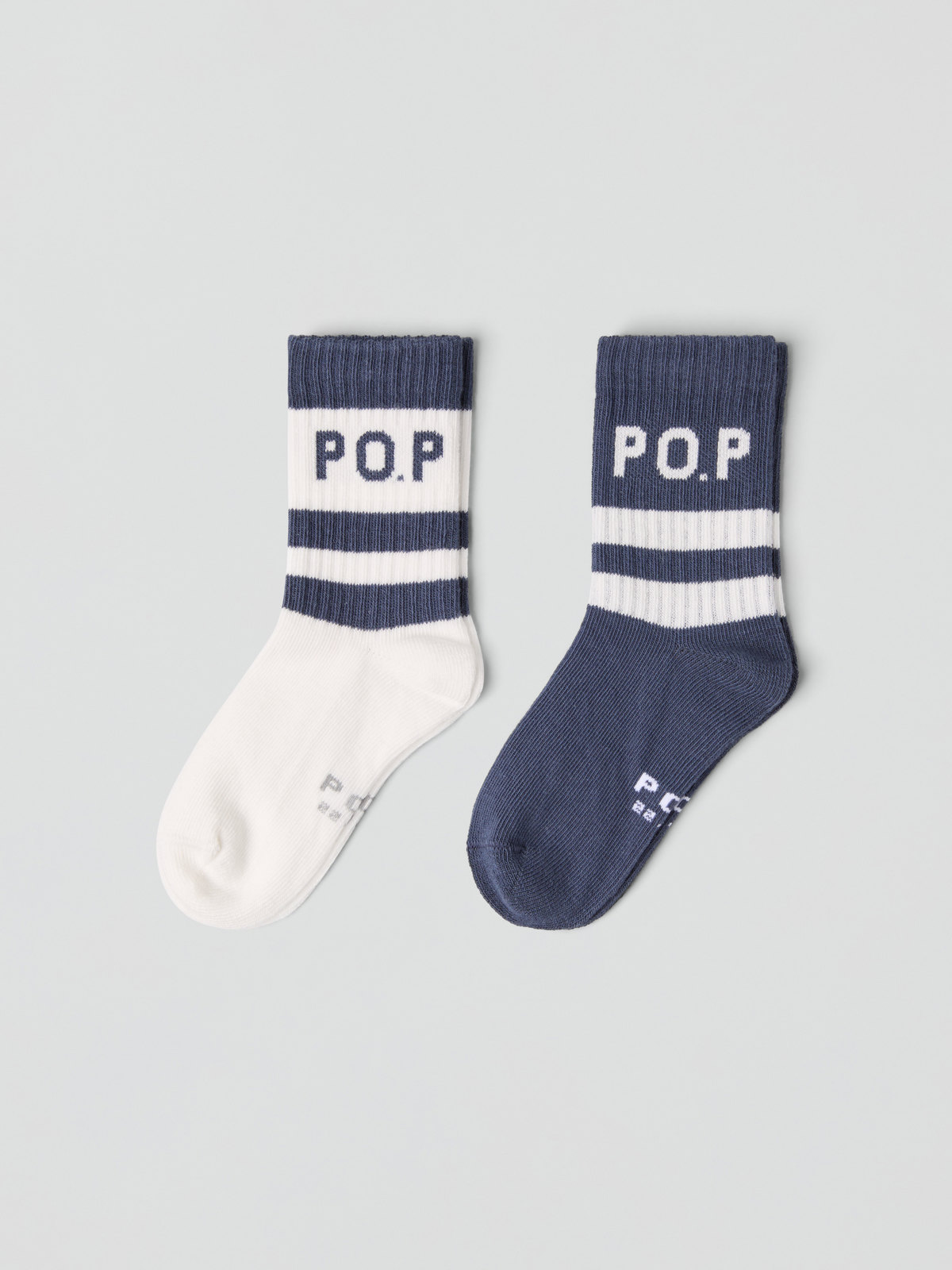 Suppler sokkeskuffen med to par sportssokker i myk økologisk bomull. Sokkene er fremstilt i et litt tykkere materiale og passer perfekt for fartsfylte aktiviteter. De har lang ribbestrikket vrangbord som ikke gnager og som holder dem på plass. Fargene matcher fint med hele kolleksjonen.