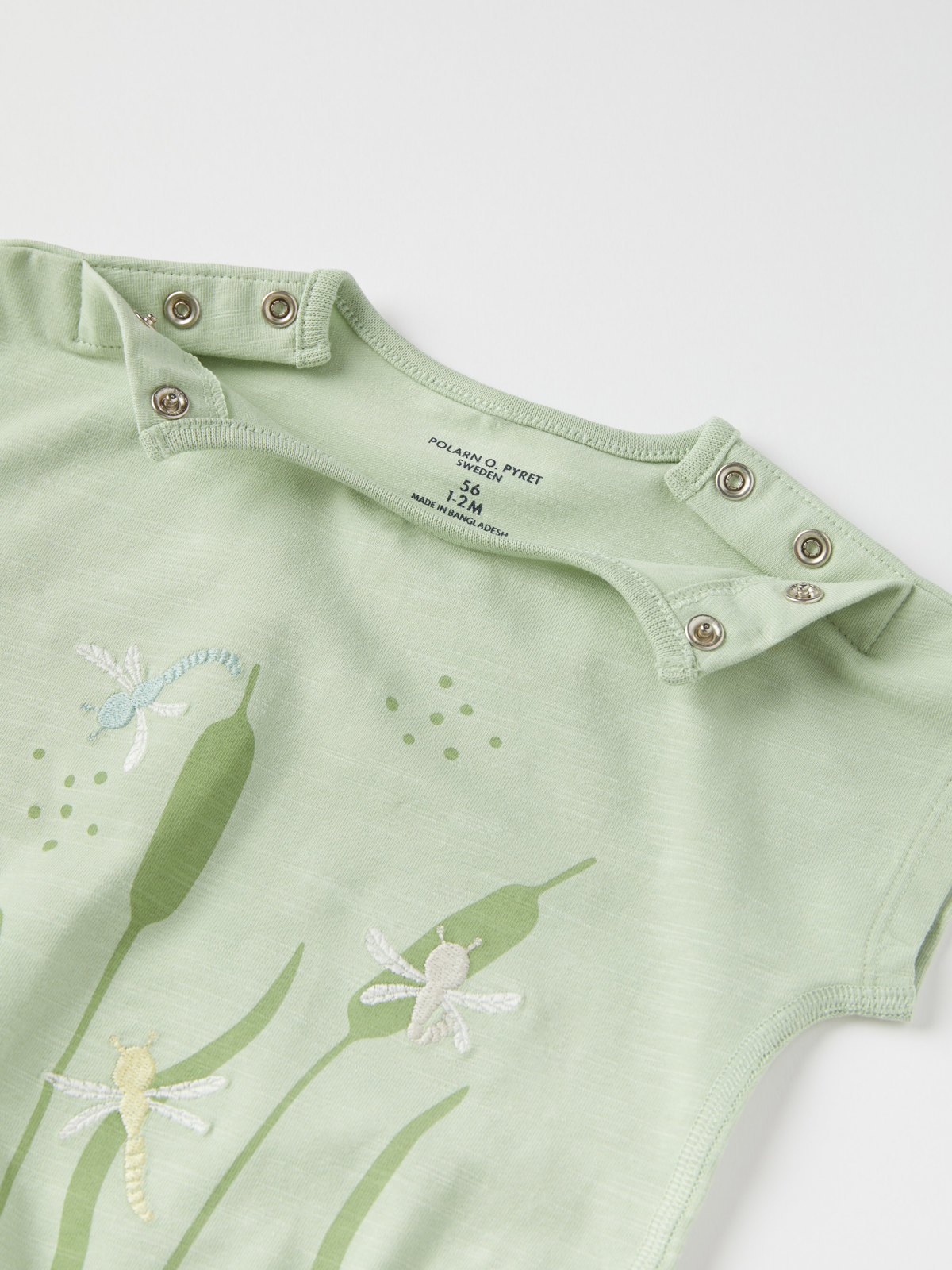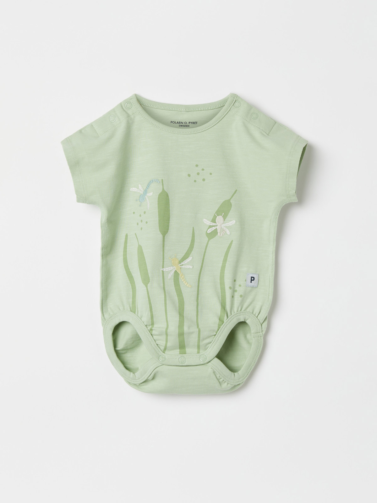 Kortermet body i 100 % økologisk bomull med romslig passform til baby. Perfekt for varme dager!