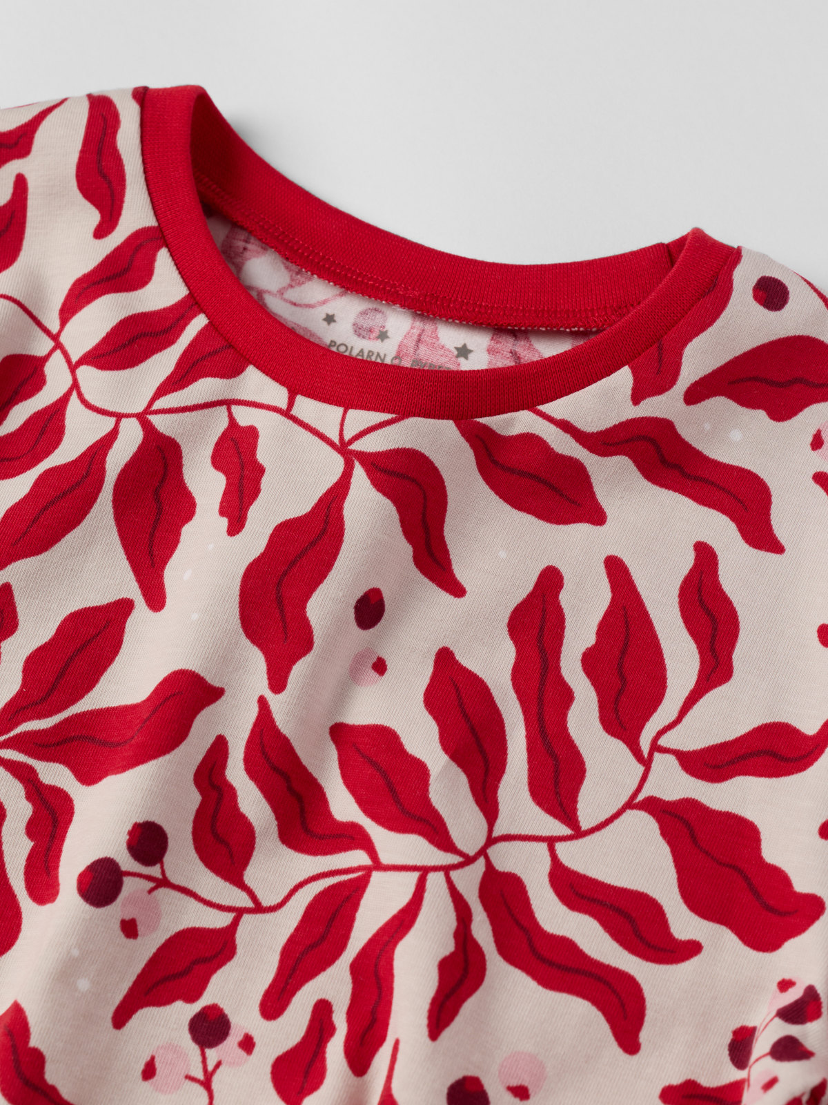 To-delt pysjamas i myk økologisk bomull sydd med ekstra myke, flate sømmer som skåner sensitiv hud. Både bukse og genser har rett modell som gir en luftig og komfortabel passform.