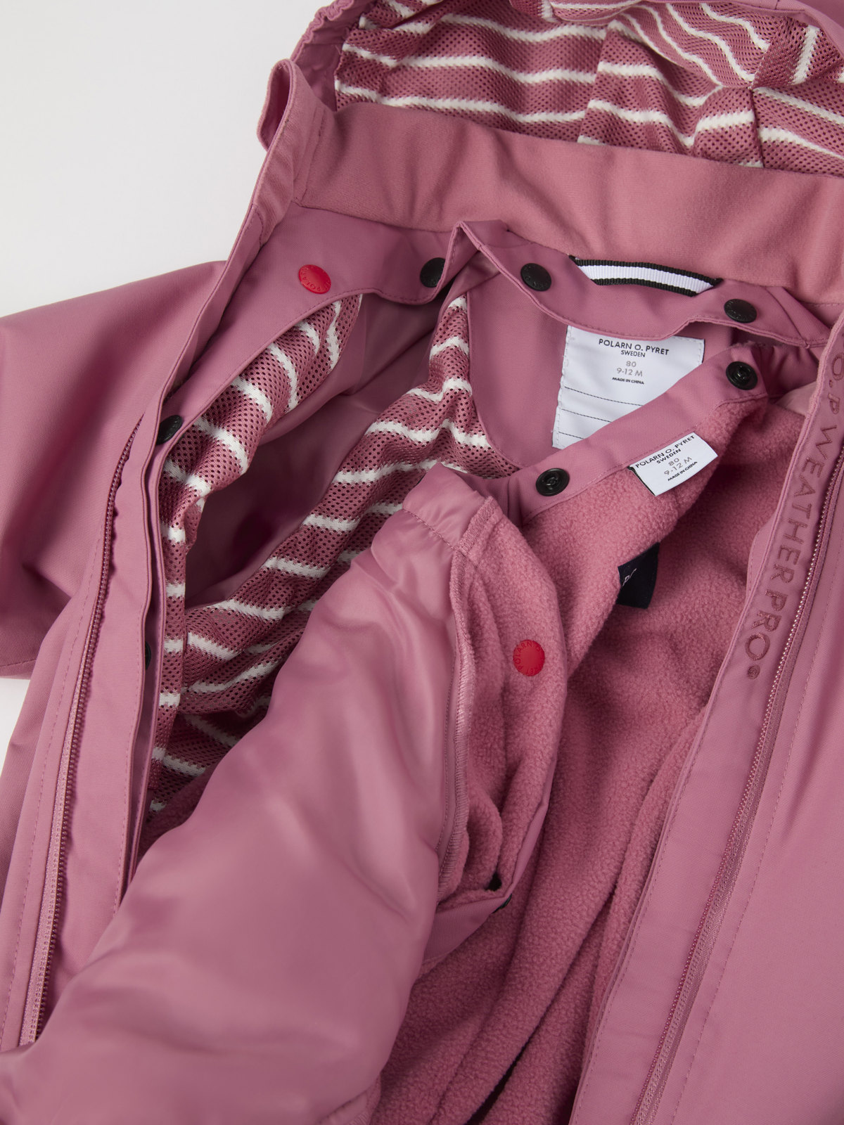• Den kontrastfargede startknappen på innsiden gjør fleecefôret enkelt å kneppe sammen med dressen