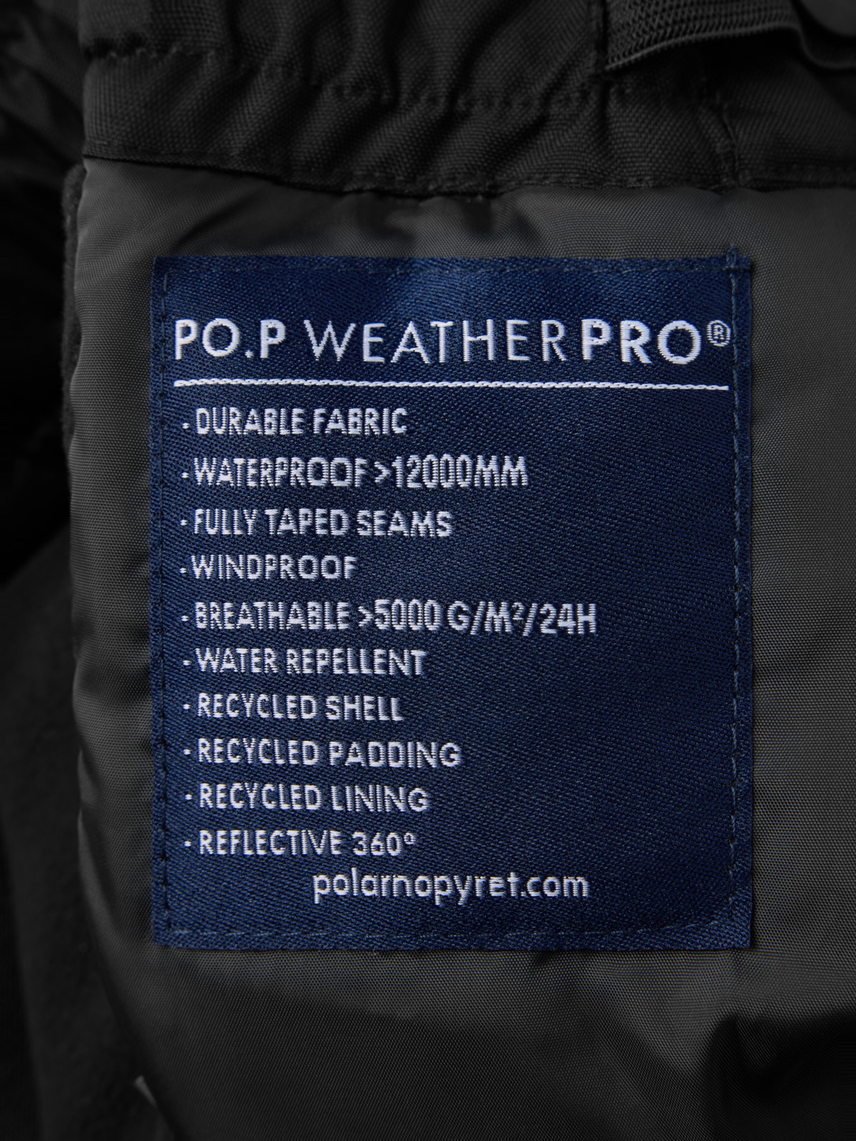 Yttertøy merket PO.P WeatherPRO® oppfyller alle våre krav til funksjonsytterplagg både når det gjelder slitestyrke, vanntetthet, pusteevne og barnesikkerhet.