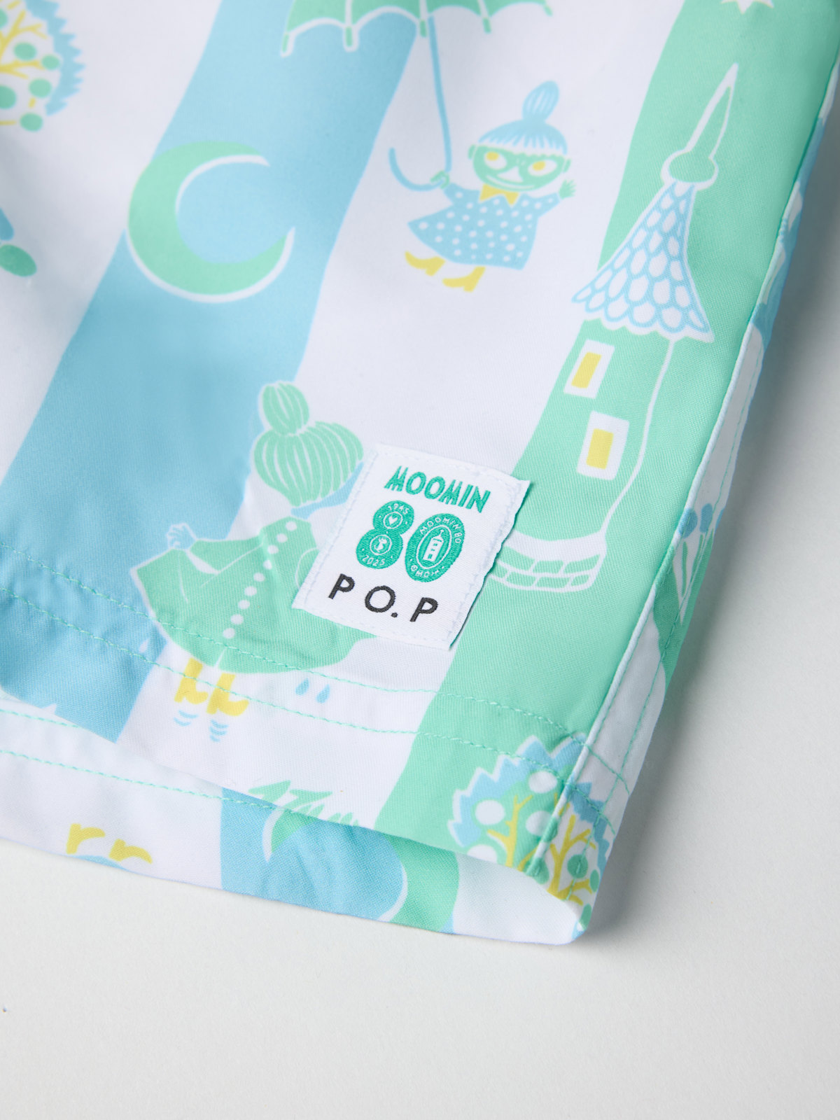 Badeshorts i resirkulert polyester med elastisk midje og knytebånd. Dette plagget er en del av vår begrensede kolleksjon for å feire Mummitrollenes 80-årsjubileum. Eksklusivt for jubileumsåret 2025 får Mummitrollene igjen vises i farger – for første gang siden 1956.
