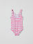 Stripet badedrakt fremstilt i mykt og behagelig materiale av resirkulert polyester. Badedrakten er helfôret og har ekstra myke sømmer som ikke gnager.