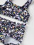 Behagelig bikini i 100 % resirkulert polyester, helmønstret med små blomster. Underdelen er en hipstermodell med høy midje. Overdelen er en rett modell med brede skulderstropper.