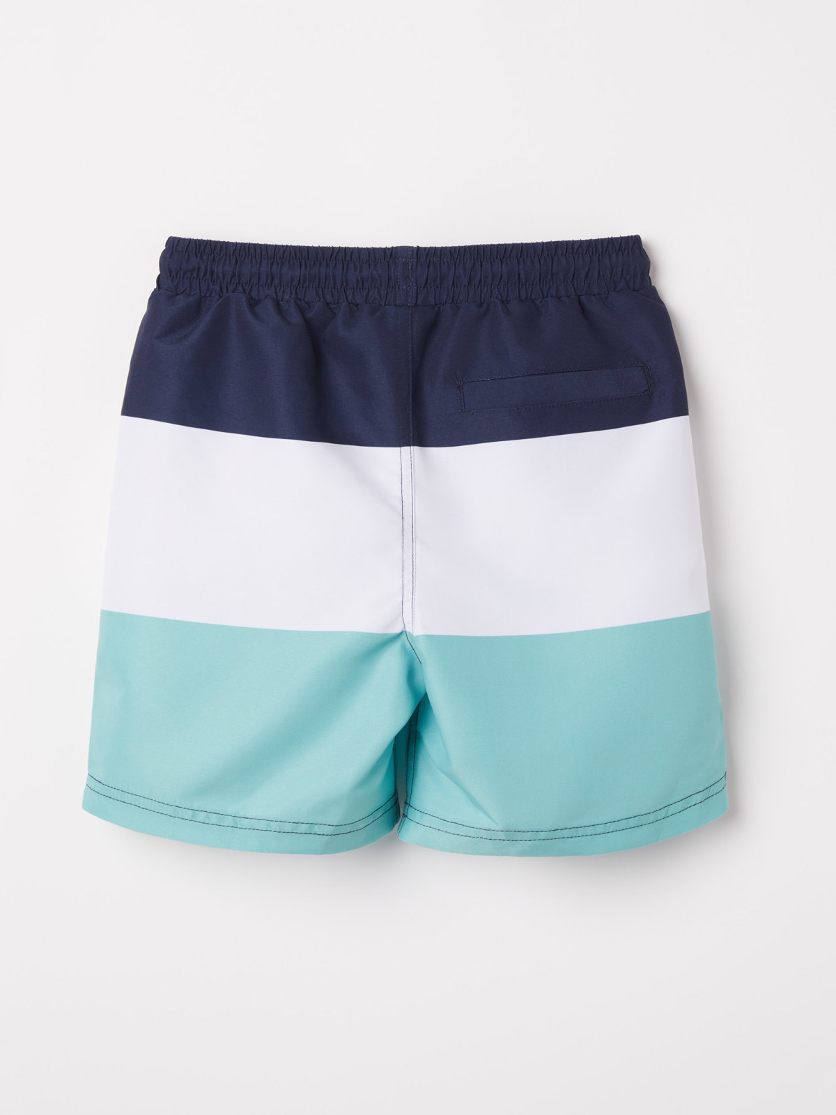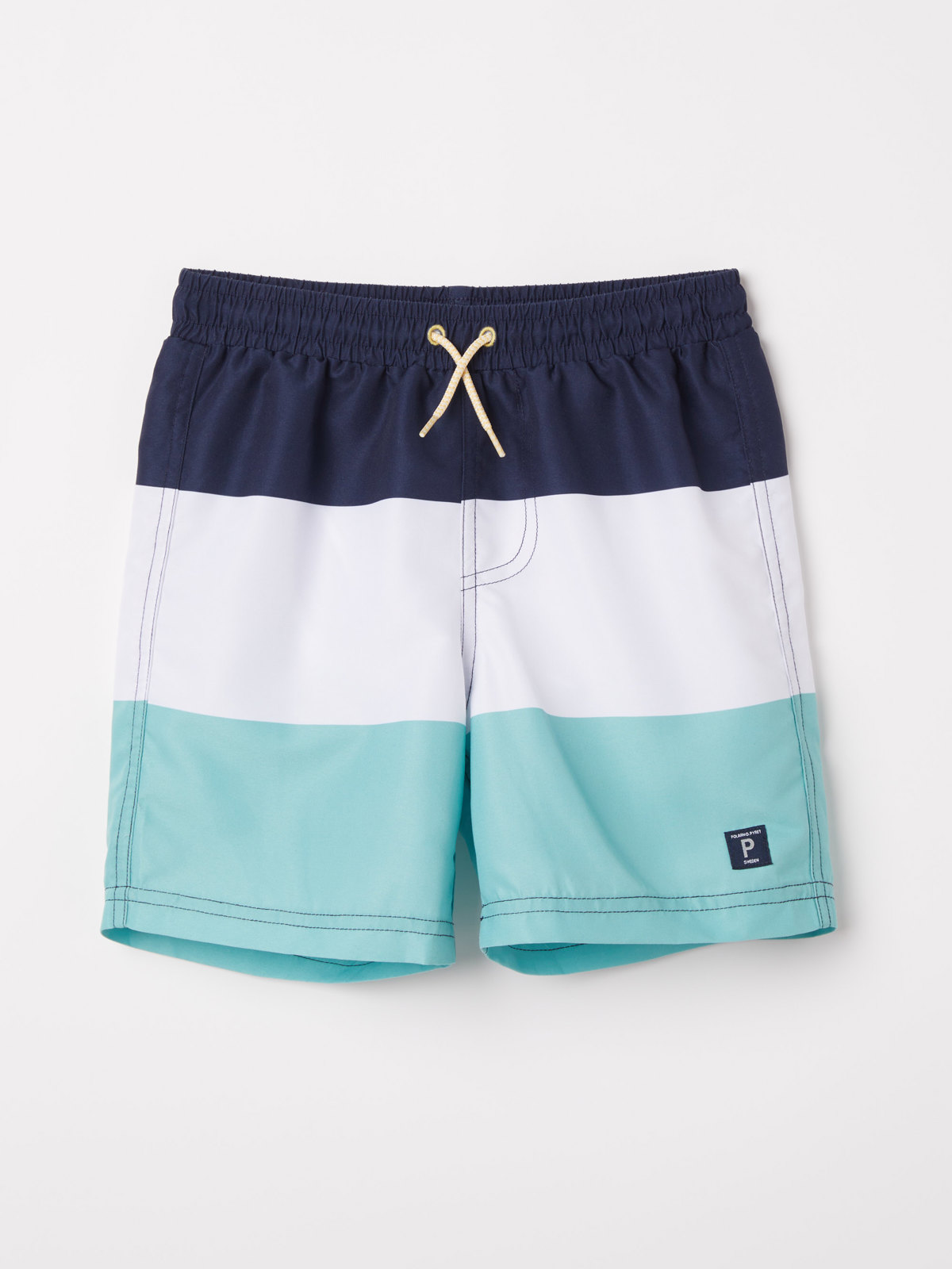 Blokkstripet badeshorts med elastisk midje og knytebånd.