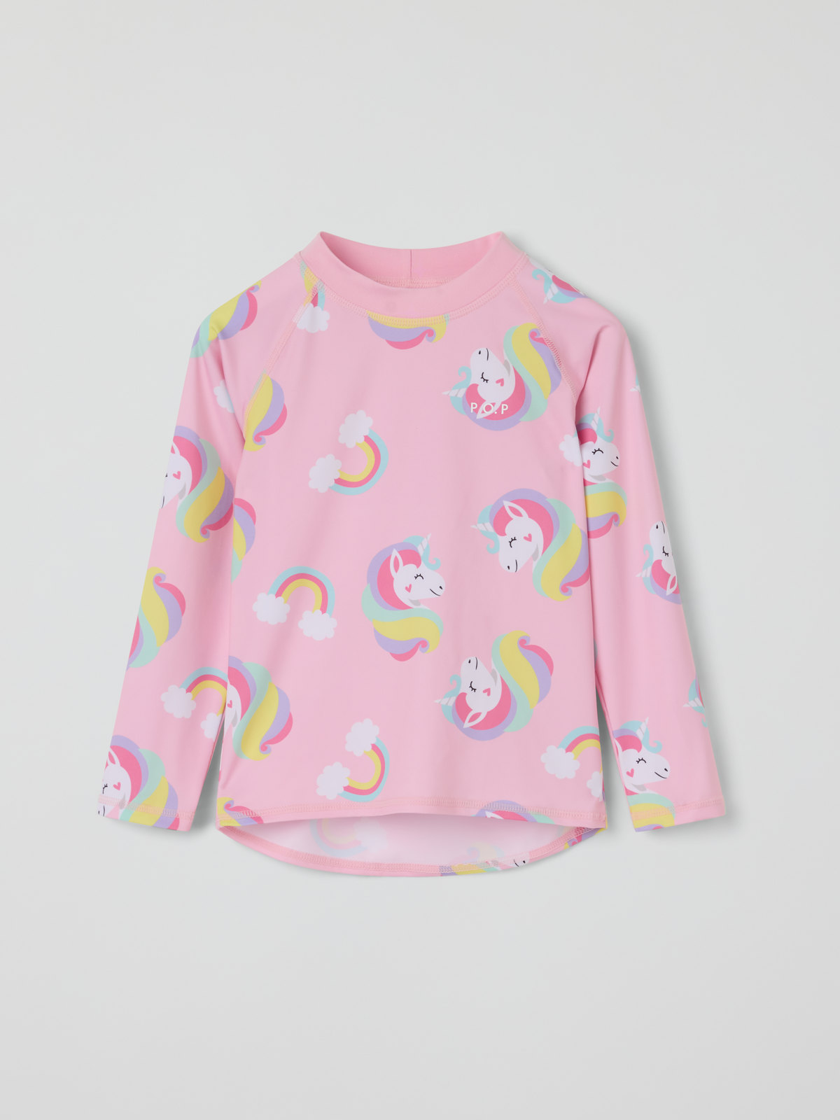 Langermet UV-trøye med UPF 50, laget i mykt og behagelig materiale av resirkulert polyester. Trøyen har heldekkende enhjørningmønster og ekstra myke sømmer som ikke gnager. Kombiner gjerne med matchende UV-bukse!