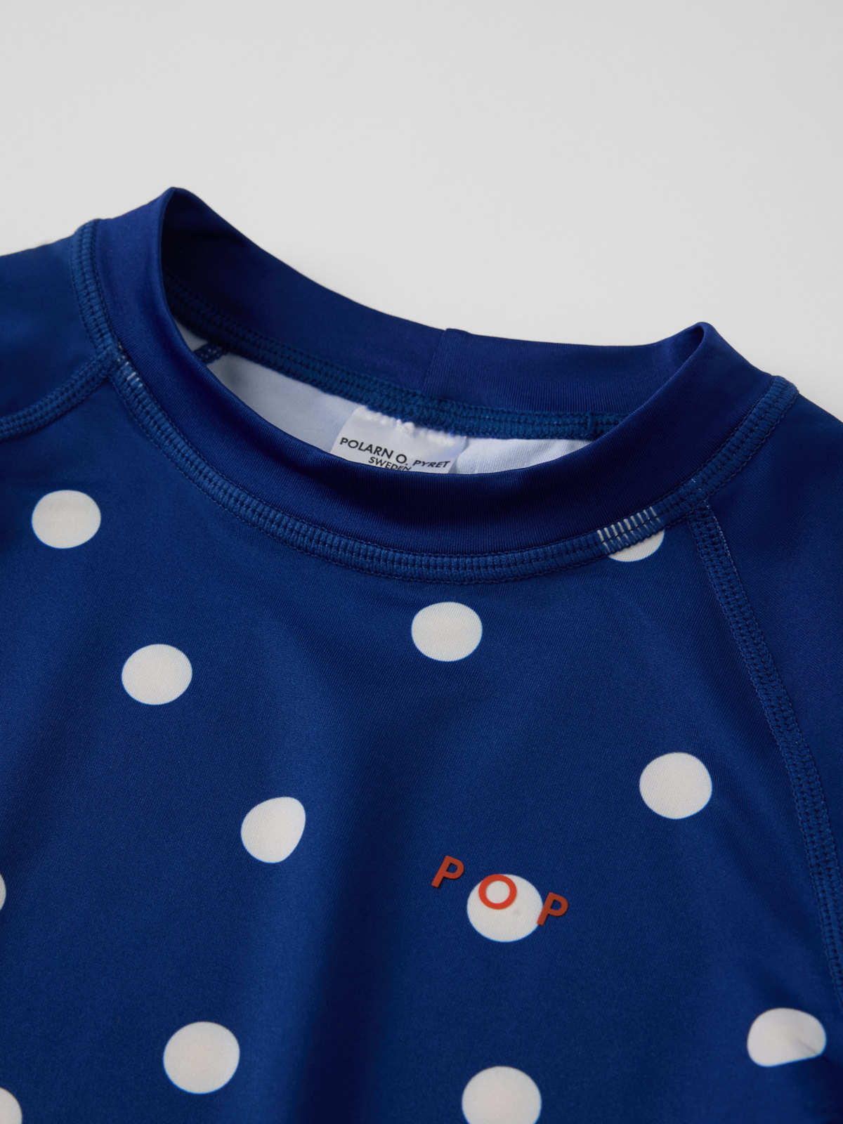 Prikkete UV-genser med lange ermer og UPF 50, laget av mykt og behagelig materiale i resirkulert polyester. Genseren har ekstra myke sømmer som ikke gnager. Match med tilhørende UV-bukse!