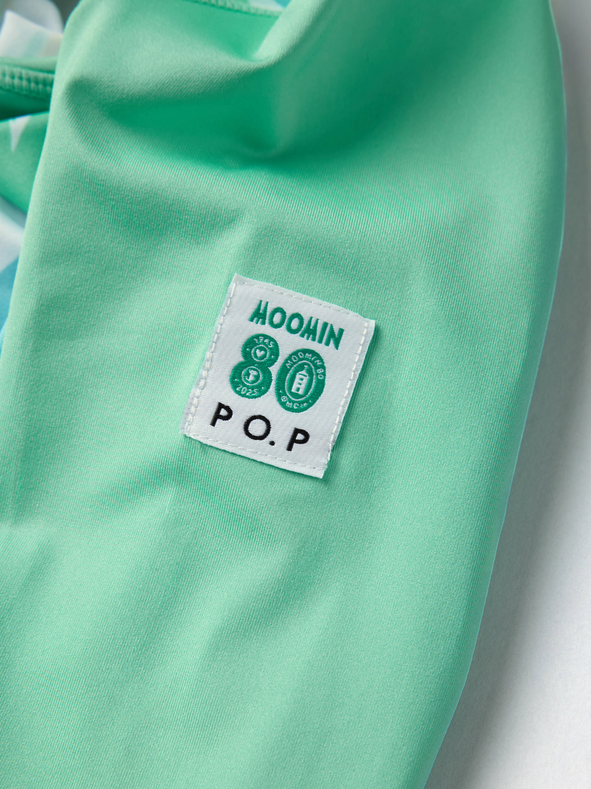 Langermet UV-trøye med UPF 50, fremstilt i mykt og behagelig materiale av resirkulert polyester. Dette plagget er en del av vår begrensede kolleksjon for å feire Mummitrollenes 80-årsjubileum. Eksklusivt for jubileumsåret 2025 får Mummitrollene igjen vises i farger – for første gang siden 1956.