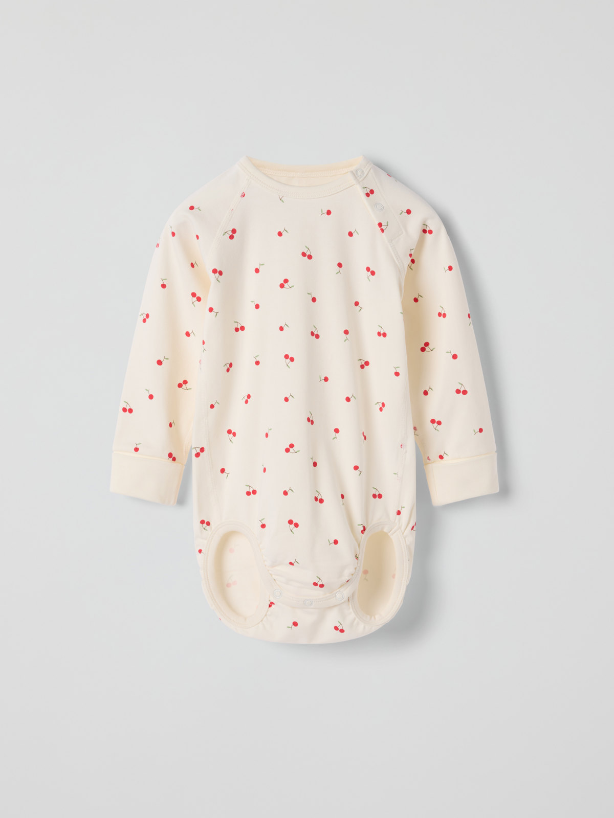 Forlengbar body i økologisk bomull – med smarte detaljer som en ekstra rad trykknapper i skrittet og nedbrettbare mansjetter på ermene, kan bodyen vokse sammen med babyen!
