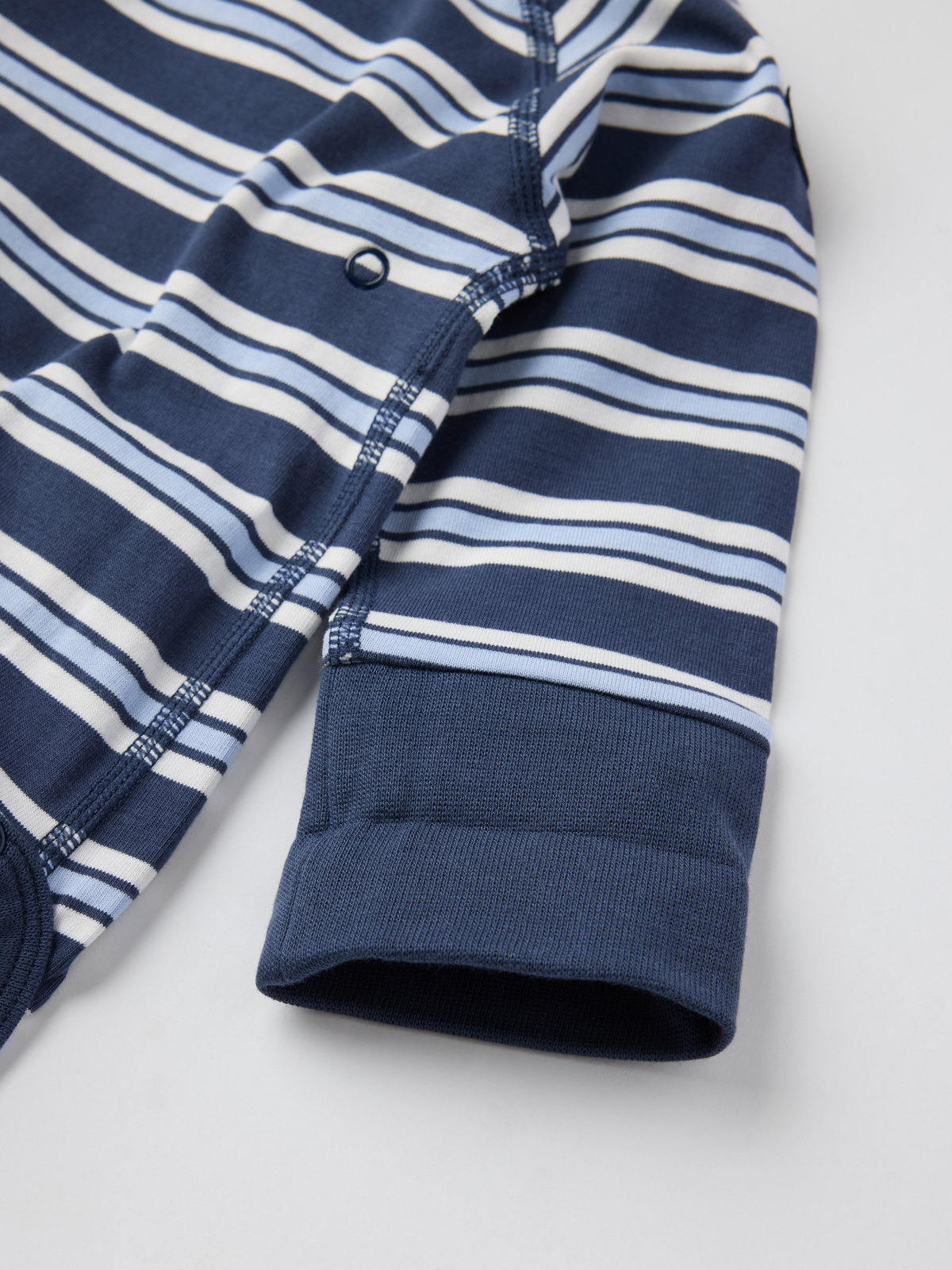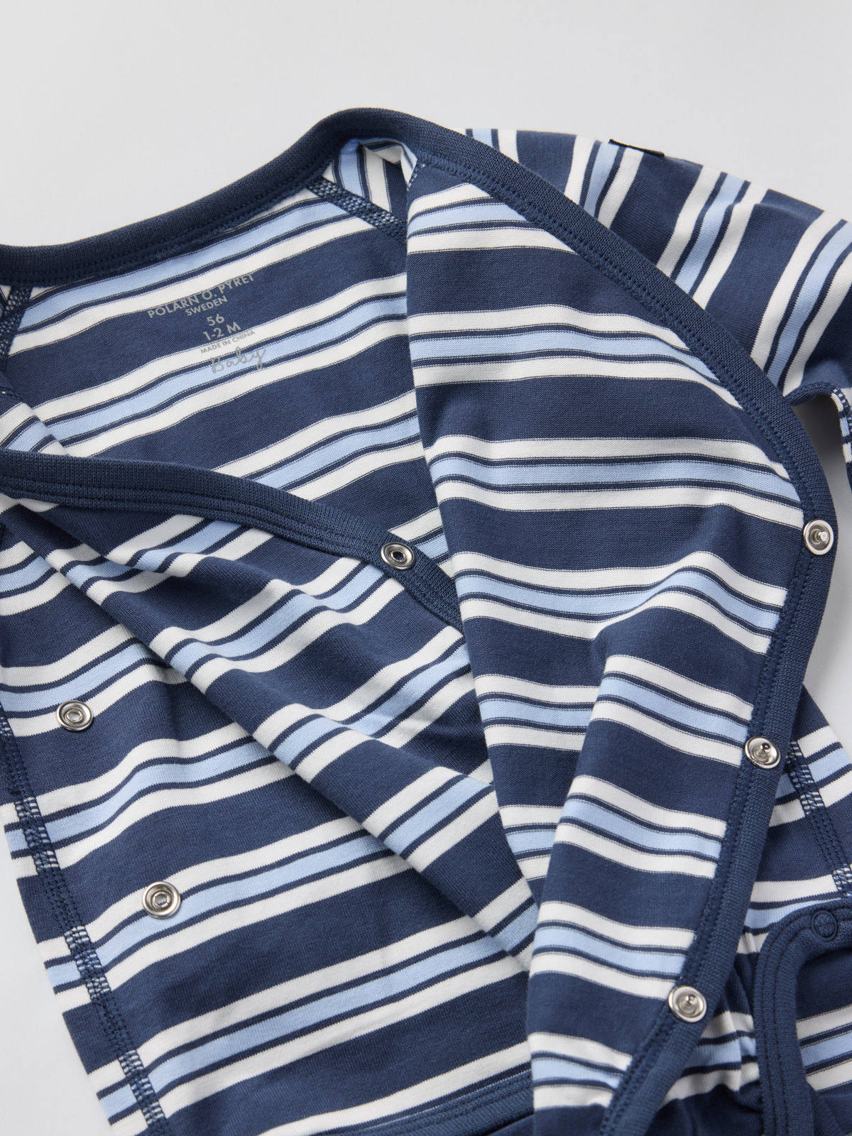 Stripet forlengbar omslagsbody i 100 % økologisk bomull. Den smarte løsningen med en ekstra rad trykknapper i skrittet og nedbrettbar vrangbord nederst på ermene gjør at bodyen kan vokse med babyen!